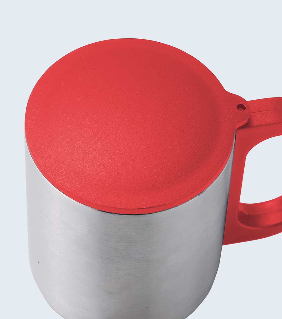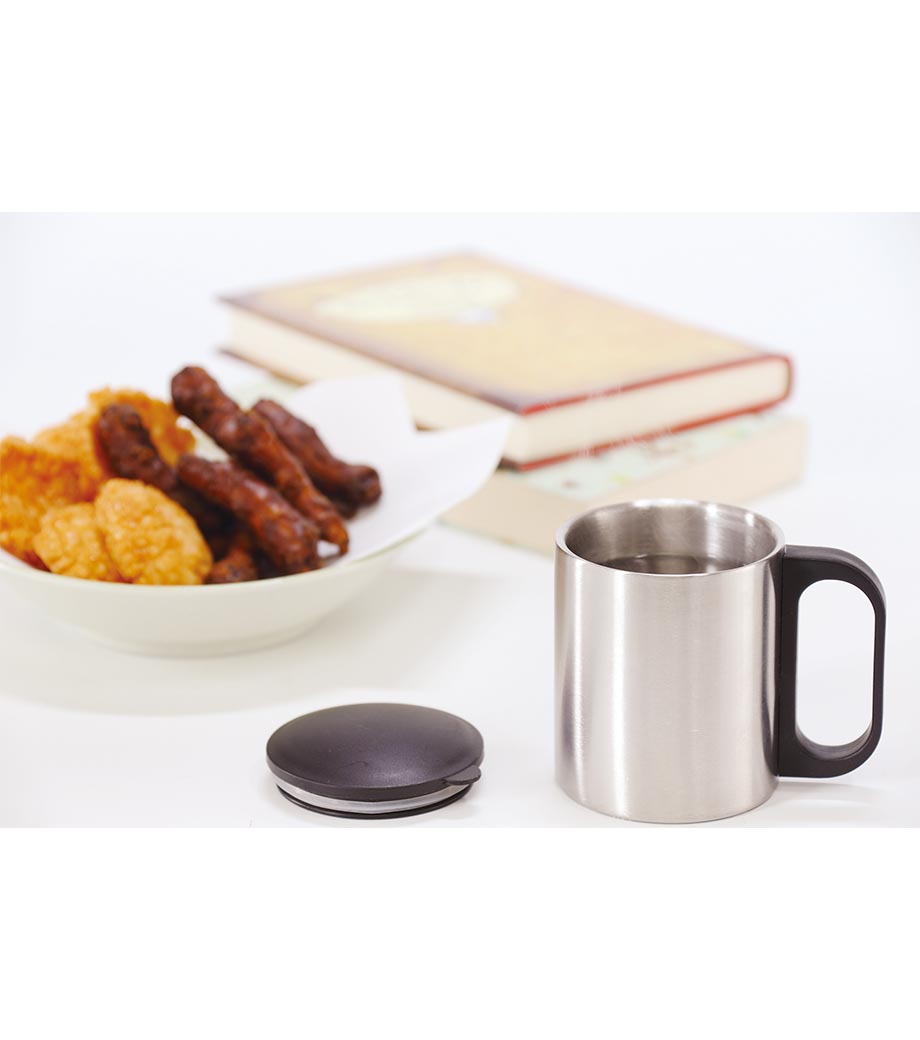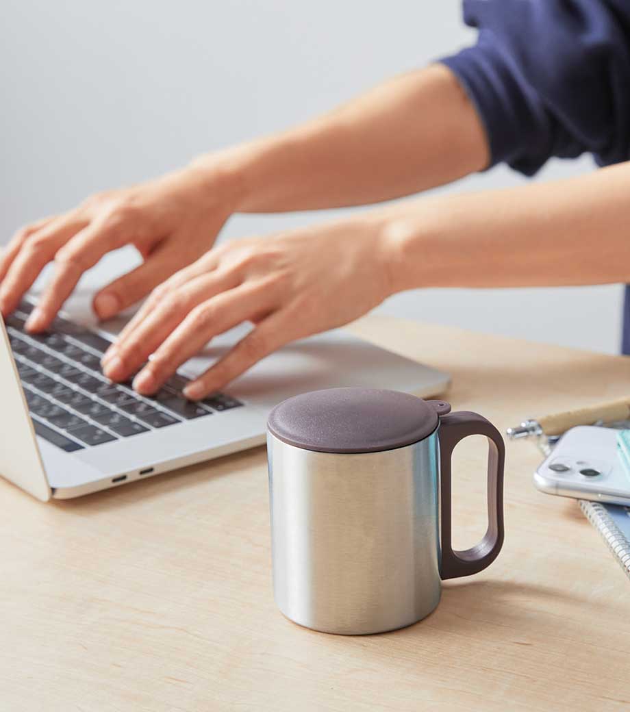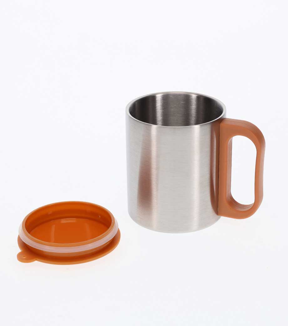 「ステンレスマグ(フタ付)」は、保冷・保温に優れたステンレス製。温かいものは温かく、冷たいものは冷たく楽しめます。フタが付いているから、さらに保冷・保温効果がUP。インドアでもアウトドアでも便利に使えます。オフィスでも、リビングでも、ピクニックやキャンプでもどうぞ!