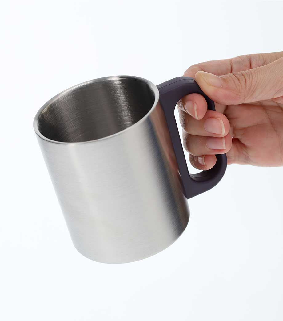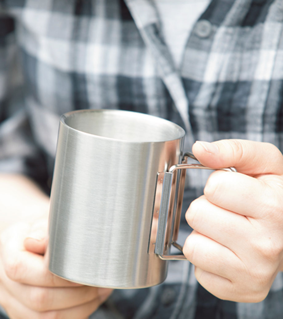 「折りたたみハンドルステンレスマグ」は、ハンドルが折りたためるマグです。