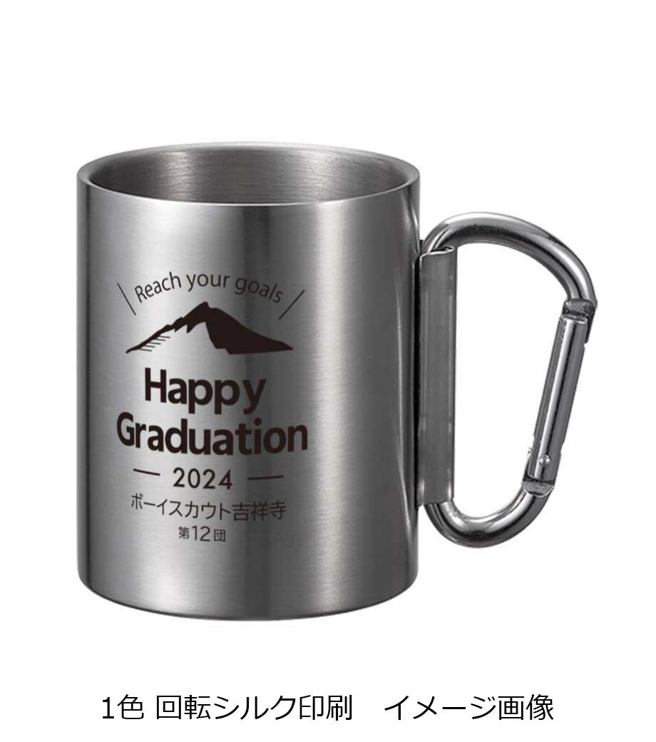 1色・2色印刷が可能で、アウトドア用品店・登山ショップのノベルティ等におすすめです。特にぐるっと広範囲に印刷ができる回転シルク印刷は、高い販促効果が期待できます。