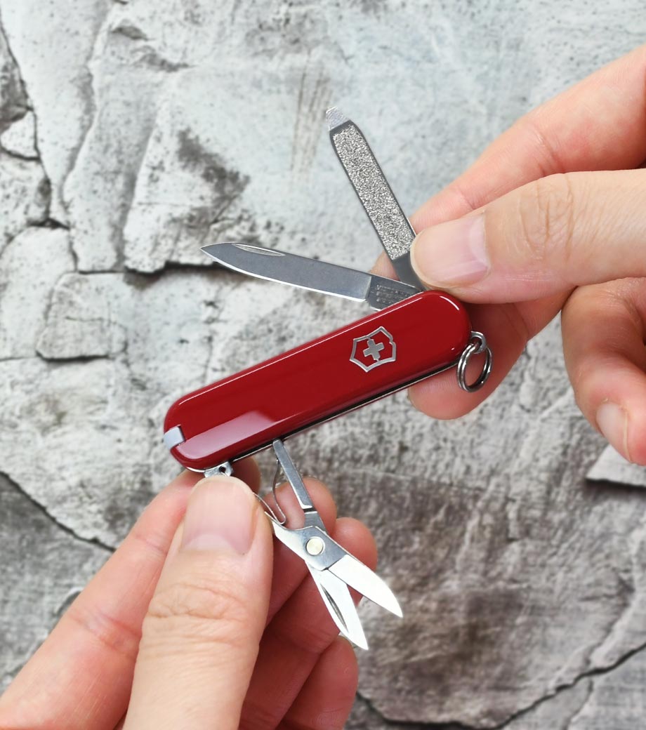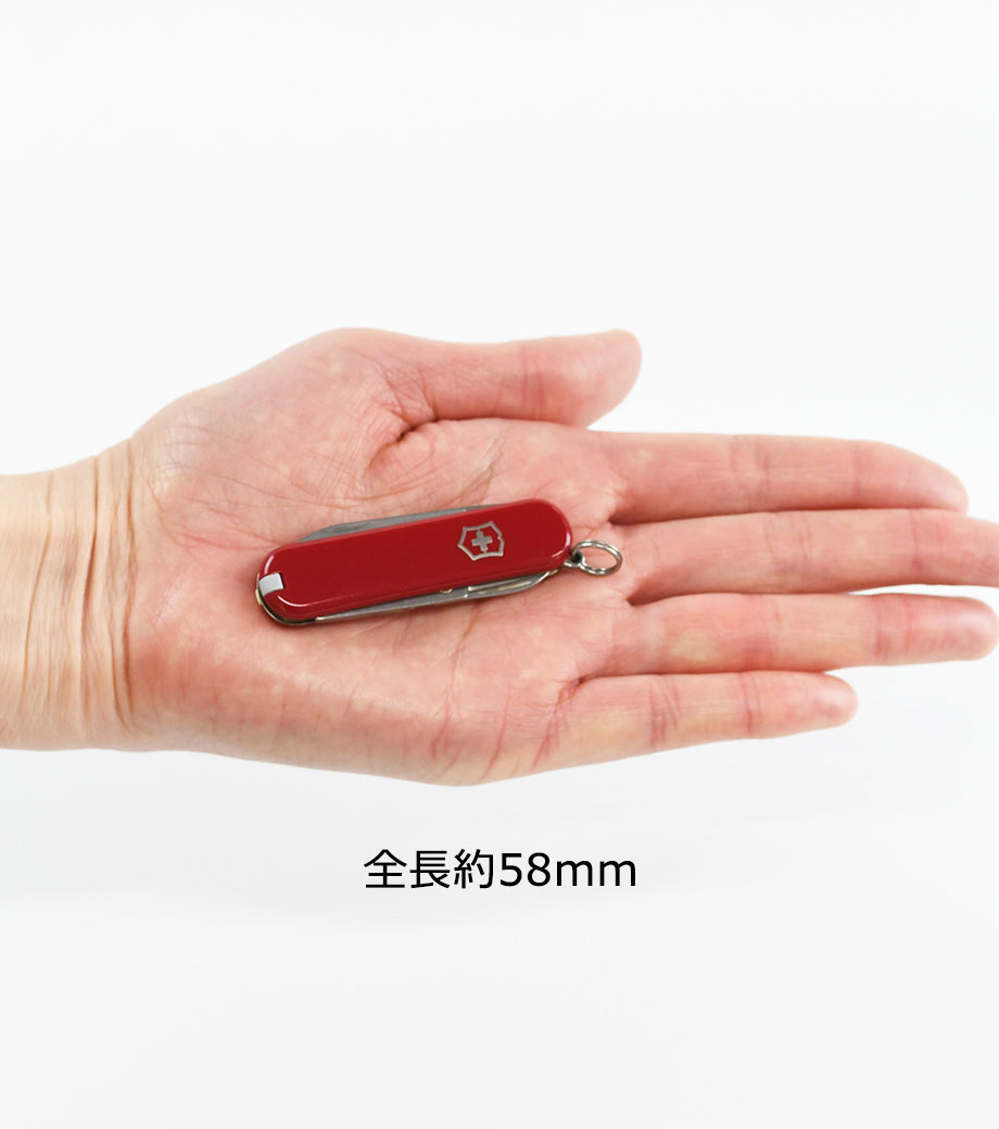 ビクトリノックス【クラシックSD】マルチツールは、ミニナイフ・はさみなど必要最低限の7機能を装備した基本モデルのミニツール。世界で愛されるブランドメーカー品です。配合にこだわったステンレススチールは強度があり錆びにくく、切れ味抜群。軽くて手に収まる全長約58mmのコンパクトサイズなので、女性にも扱いやすいです。