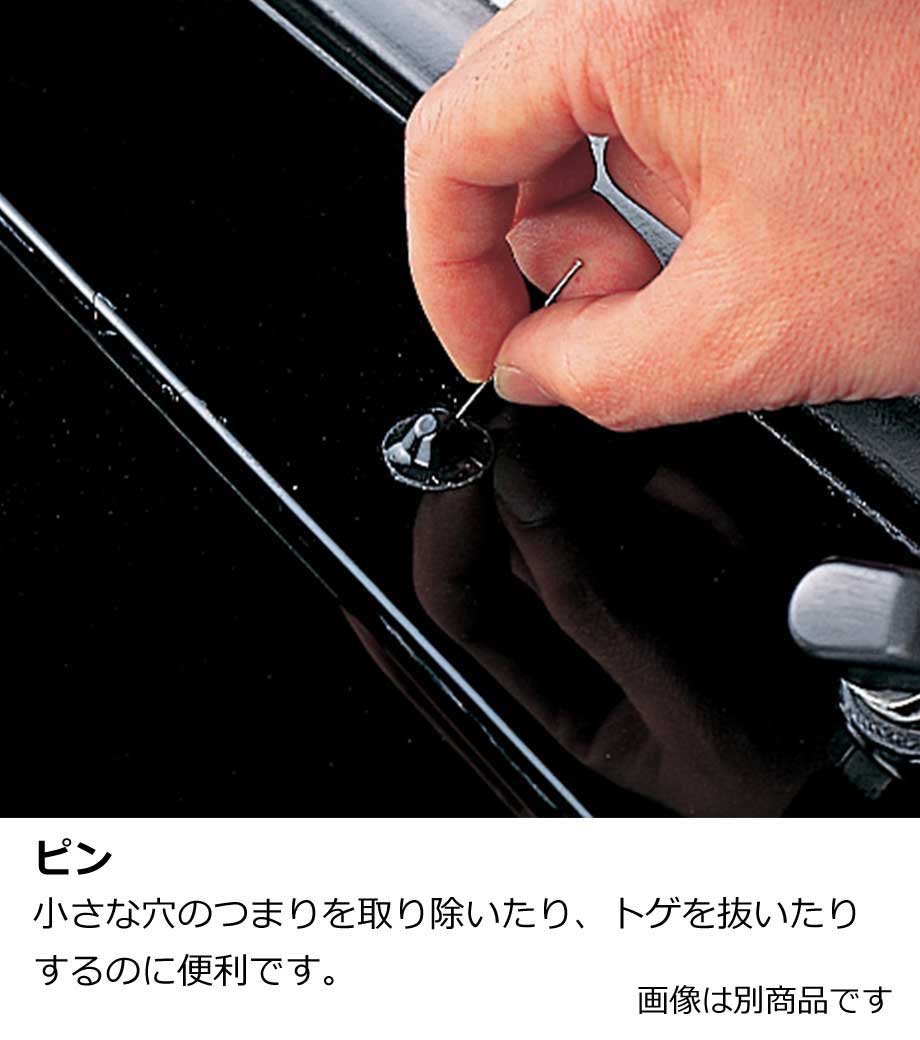 1.マイナスドライバー(小)3mm、2.ピンセット(毛抜き)、3.ツースピック(つまようじ)、4.はさみ、5.つめやすり、6.ボールペン(ブルー)、7.ピン、8.クラフトブレード(レターオープナー)、9.スケール(cm)、10.スケール(inch)