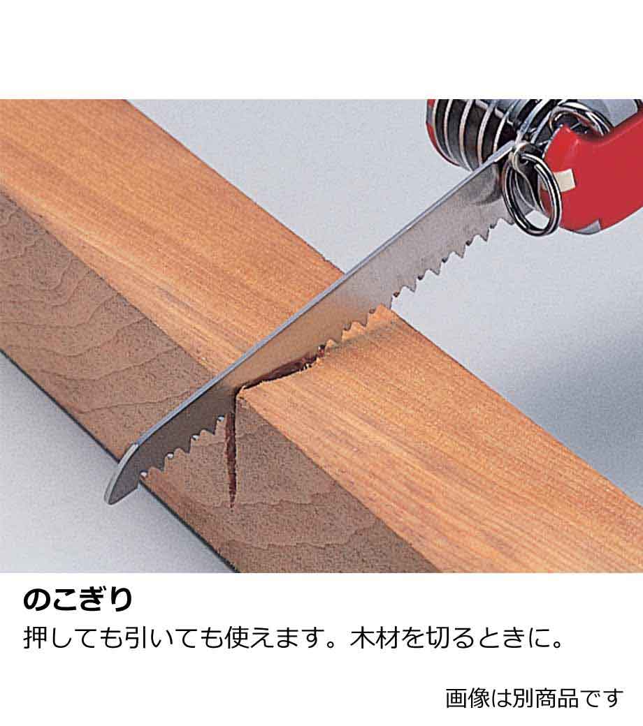 1.ラージブレード(大刃)、2.スモールブレード(小刃)、3.コルクせん抜き、4.カン切り、5.マイナスドライバー(小)3mm、6.せん抜き、7.マイナスドライバー(大)6mm、8.ワイヤーストリッパー、9.リーマー(穴あけ)/パンチ、10.キーリング、11.ピンセット(毛抜き)、12.ツースピック(つまようじ)、13.はさみ、14.マルチフック、15.のこぎり