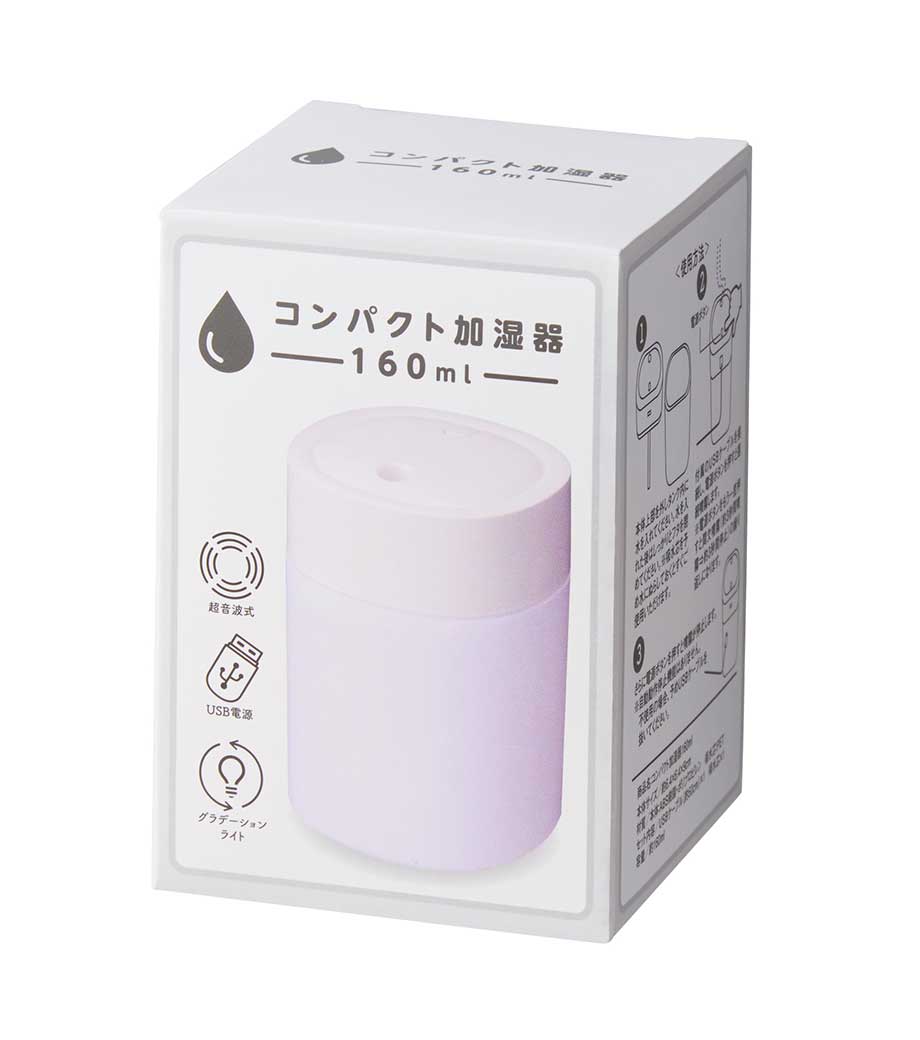 コンパクトながら快適な潤いを届ける超音波式加湿器。連続・断続噴射を切り替えられ、時間とともに5色に変化するイルミネーションライトがリラックス空間を演出。USB電源で使いやすく、簡単な構造だからお手入れがしやすいのも嬉しいですね。ミニサイズで旅行先にも携帯しやすくおすすめです。