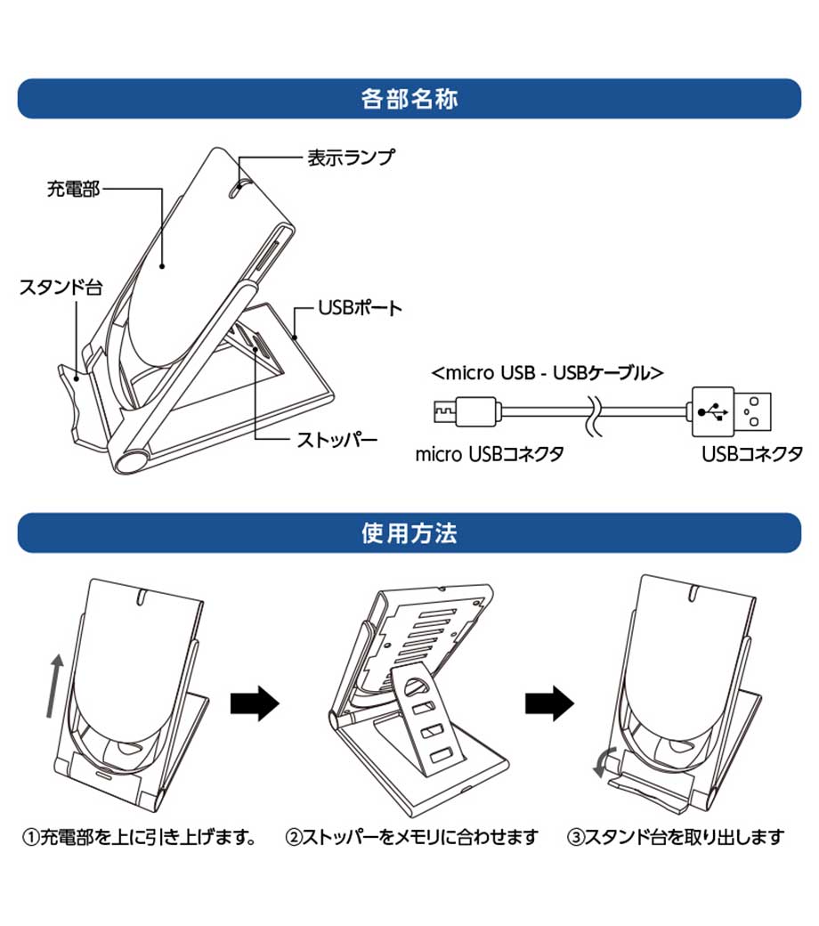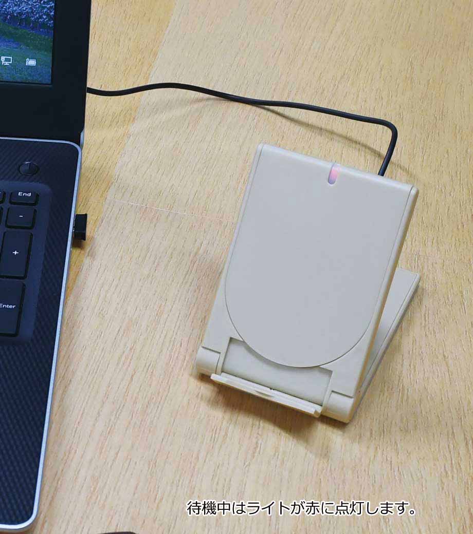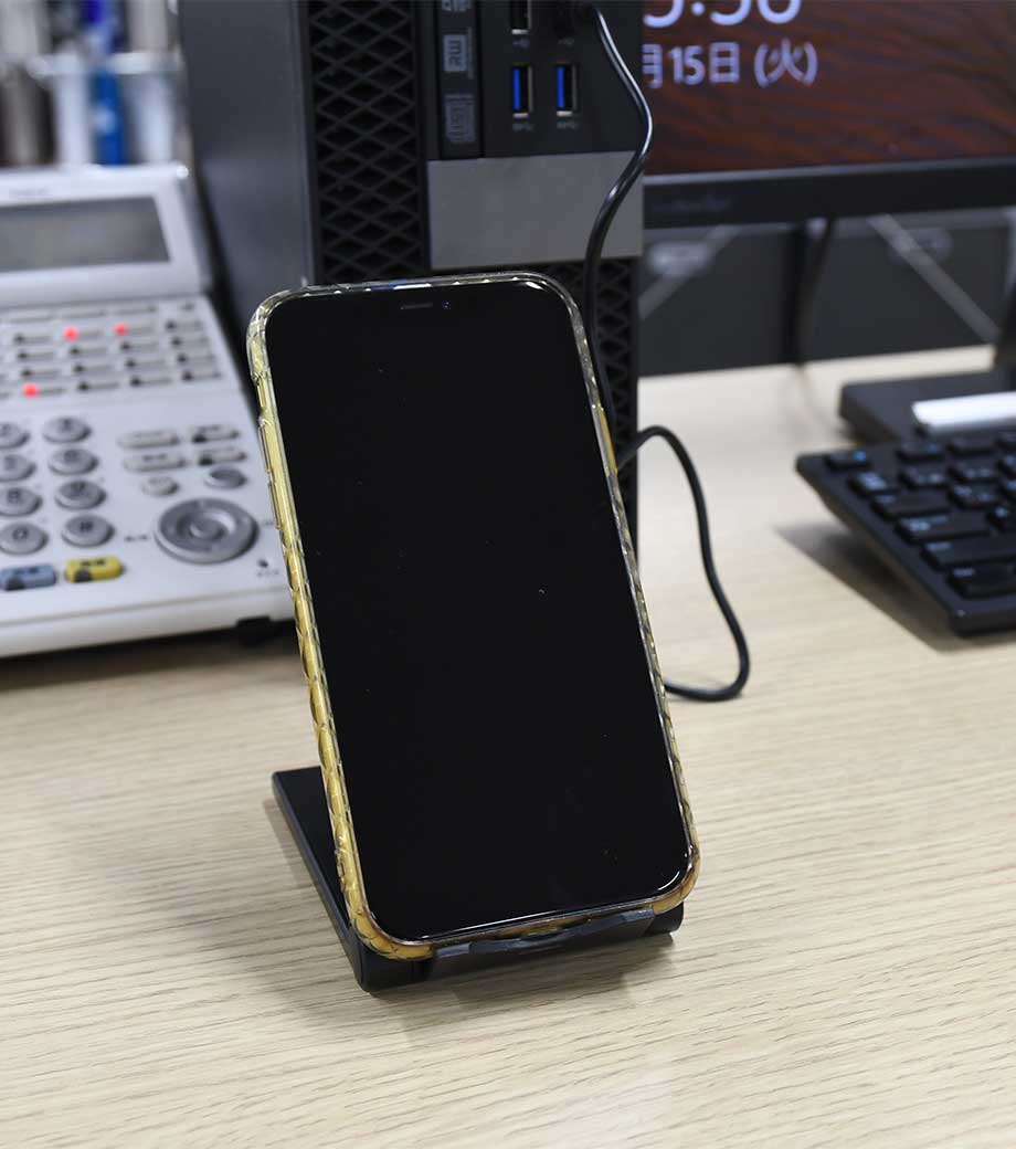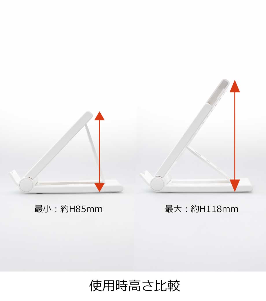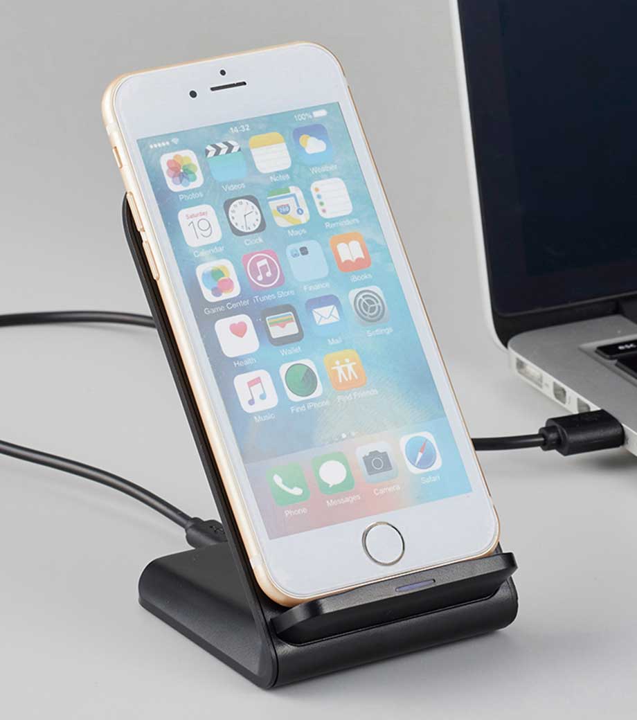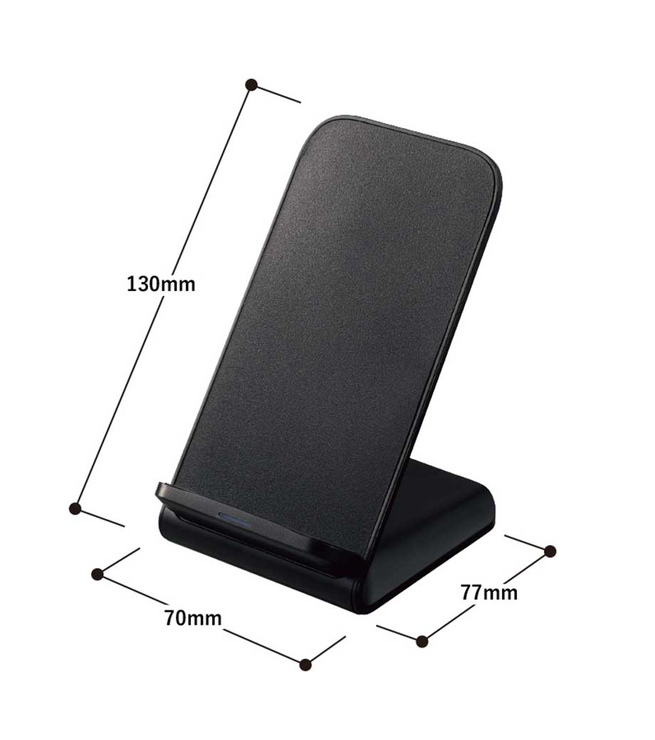 スタンドワイヤレス充電器折りたたみタイプ 5Wは、そのまま使えばスマホスタンド、PCに接続すればスマホを操作しながら充電できる便利グッズ。接触面の高さは調節できるので、縦置きでも横置きでも使えます。スタンドの角度も背面のストッパーで調節でき、見やすい位置でスマホ操作が可能です。外出先でも使いやすい折りたたみタイプなので、リモートワークのお供にピッタリ!