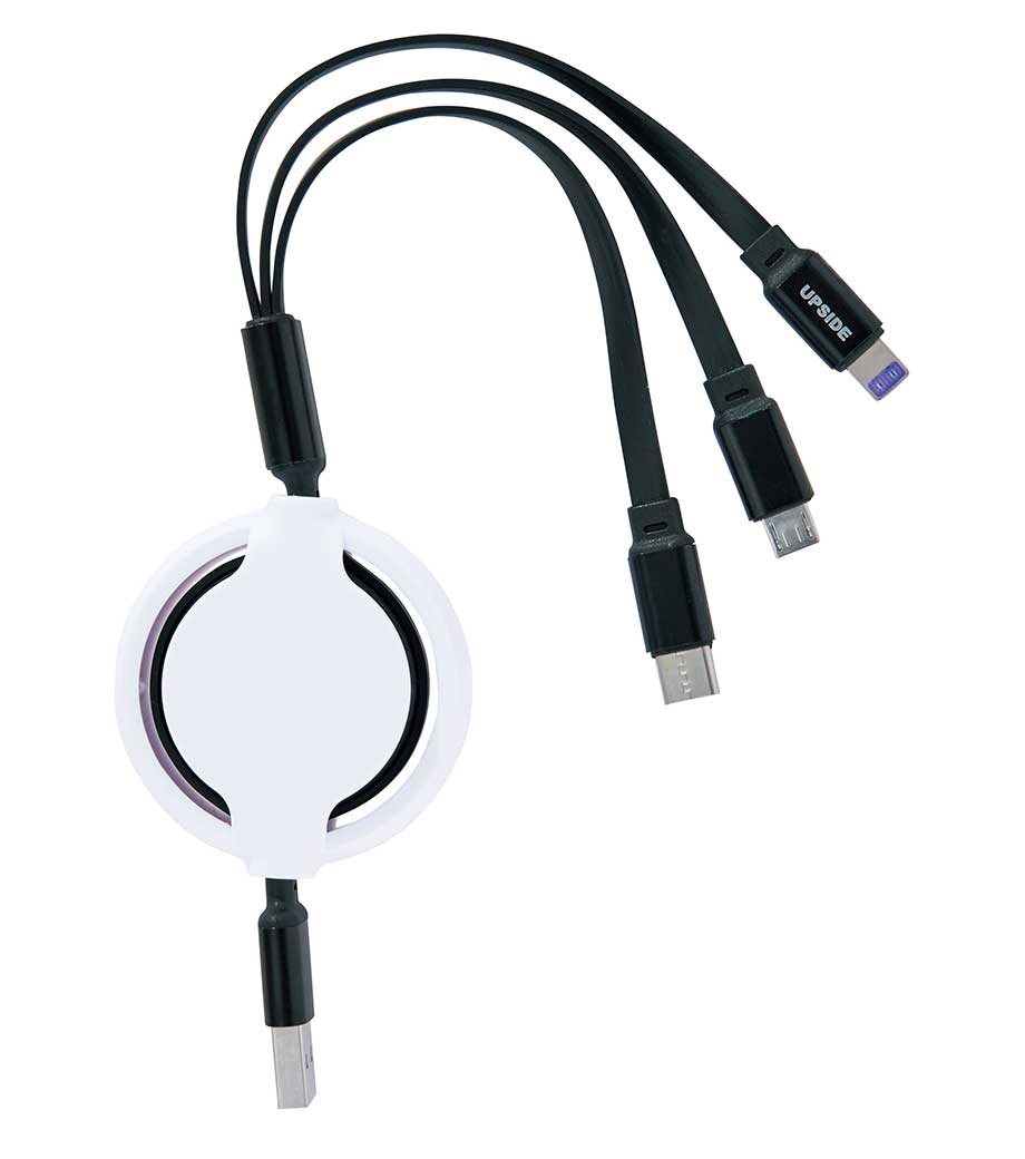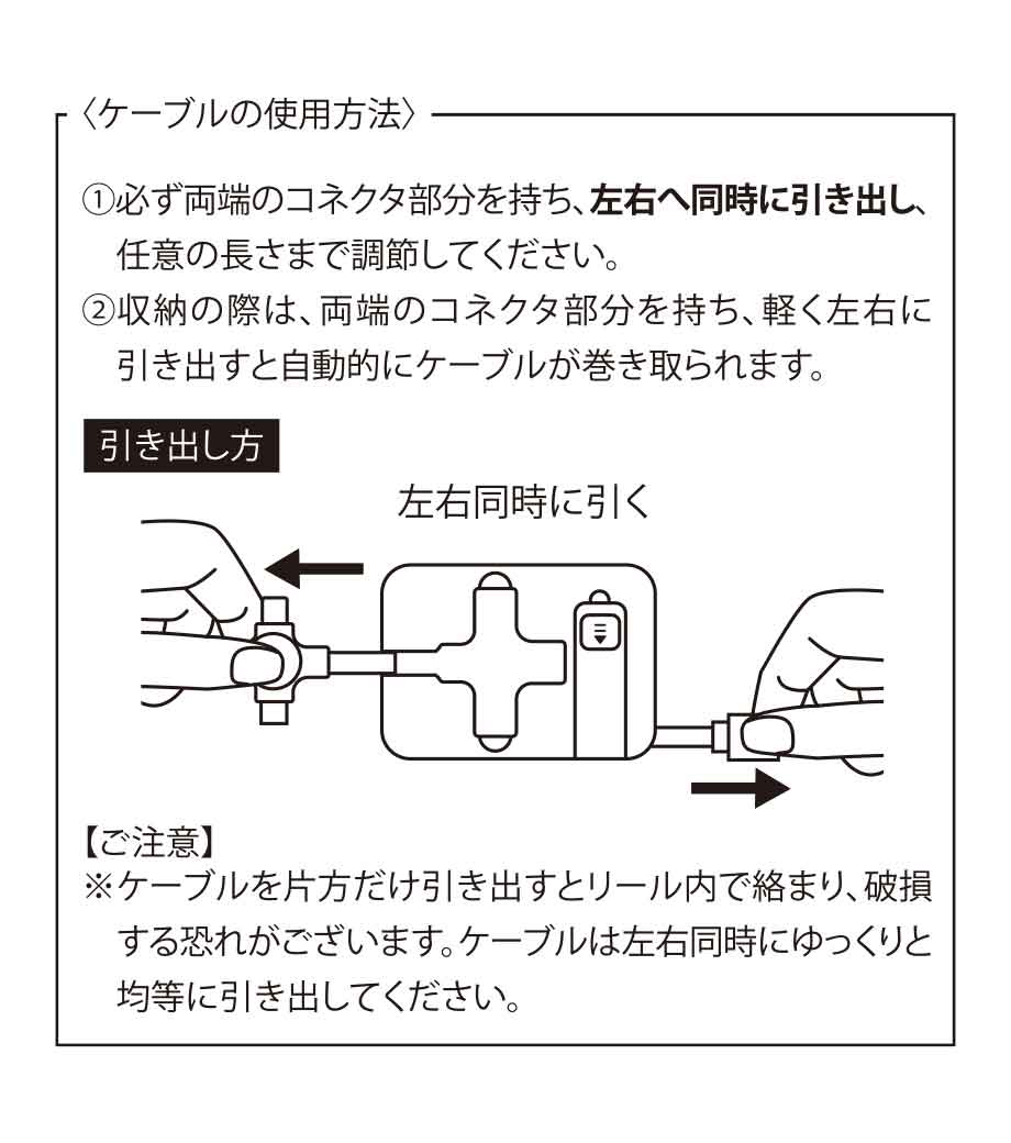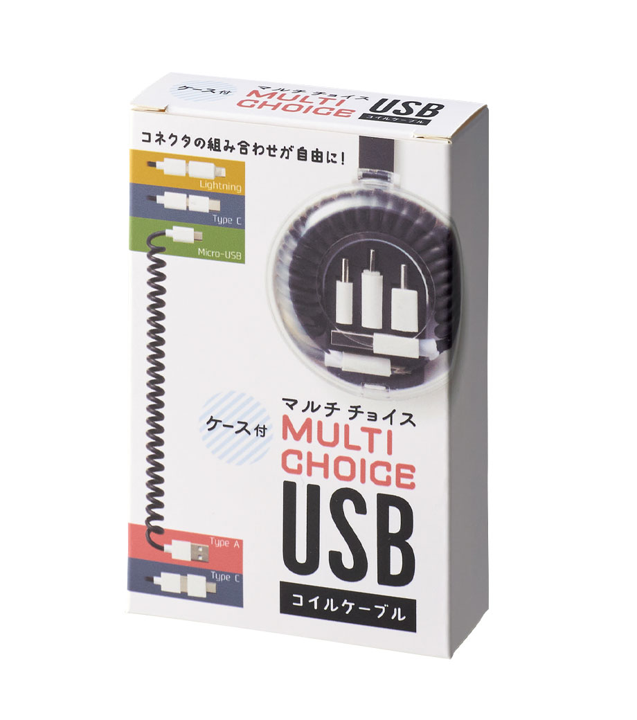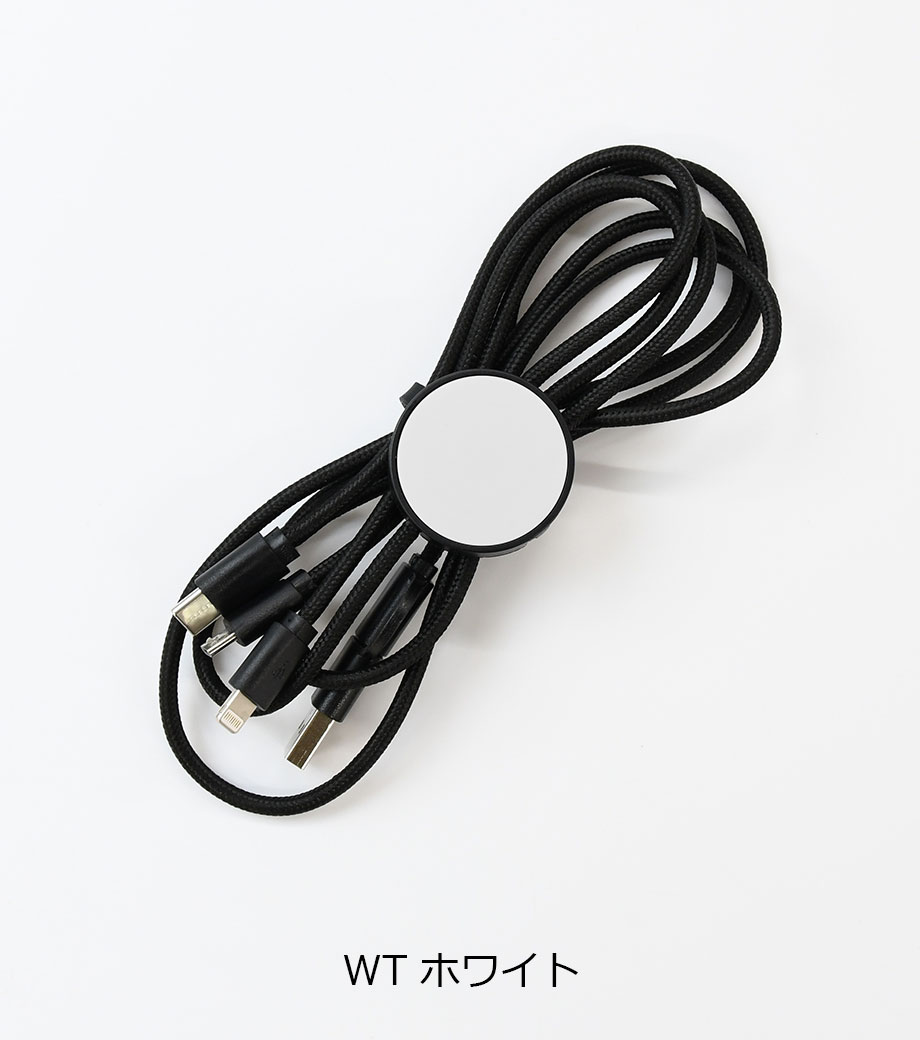 1本でさまざまな端子に対応できる便利なツール! iOS向け端子・Micro-USB・Type-C(リバーシブル端子)の3種類に対応し、スマホやタブレットの充電・データ転送がスムーズに行えます。巻取り式で、使わないときはすっきり収納。バッグやポーチの中でコードが絡まる心配がなく、コンパクトで持ち運びに最適です。