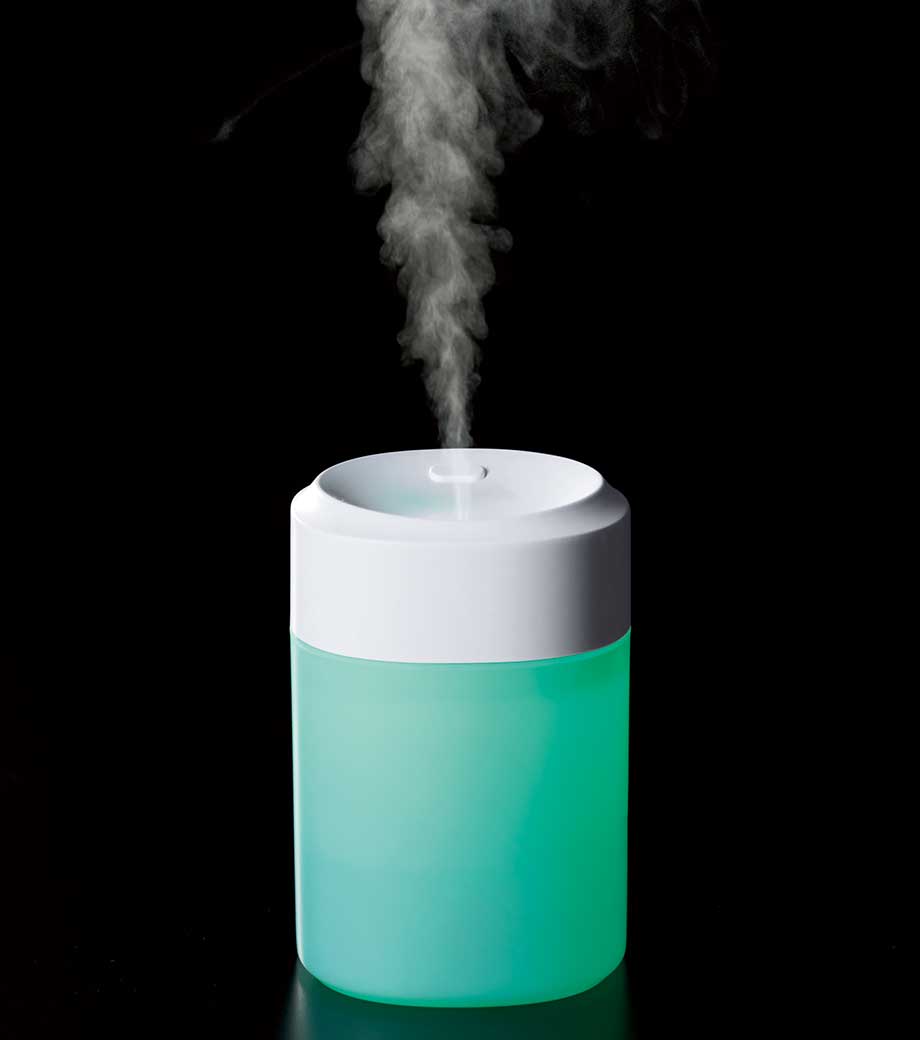 コンパクトながら快適な潤いを届ける超音波式加湿器。連続・断続噴射を切り替えられ、時間とともに5色に変化するイルミネーションライトがリラックス空間を演出。USB電源で使いやすく、簡単な構造だからお手入れがしやすいのも嬉しいですね。ミニサイズで旅行先にも携帯しやすくおすすめです。
