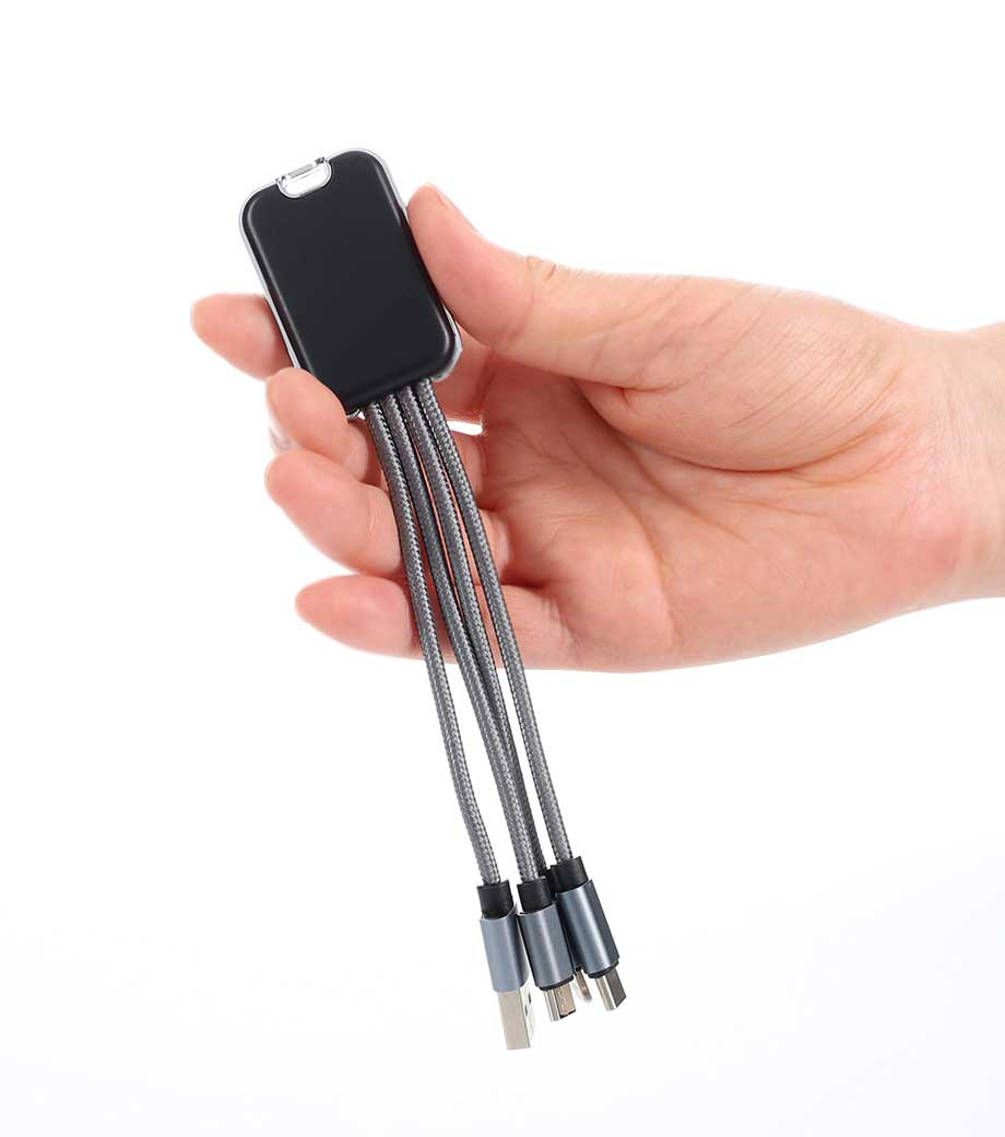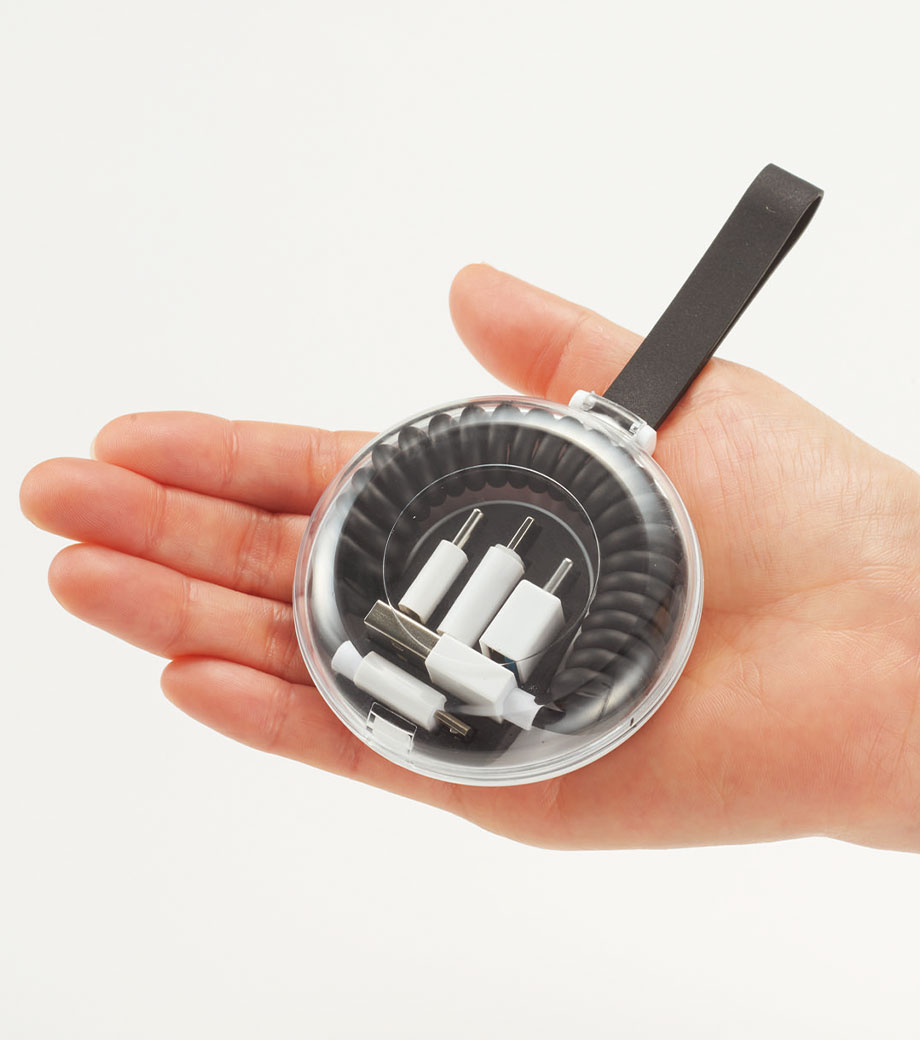 TypeC、micro USB、Lightningケーブルがワンセットになった便利グッズ。スマホにタブレットにイヤフォンと、別々の端子が搭載された機器を持ち歩くならこれ1つで解決。パソコンに挿してUSB充電ができます。コードは最大1mほど延ばせるので充電がラクチンです。使わない時はコンパクトにしまっておけるのでカバンもすっきり!
