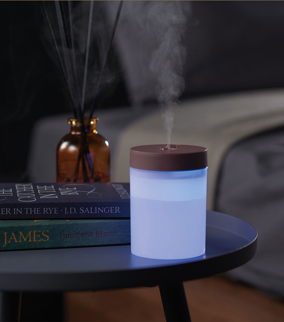 スタイリッシュでコンパクトな卓上加湿器。小ぶりながらもしっかり加湿し、乾燥対策におすすめです。インテリアにもなじみやすく就寝時や作業中も快適。USB給電対応で持ち運びも簡単で、旅先でも活躍します。カラフルに変化するライトが癒しを演出。