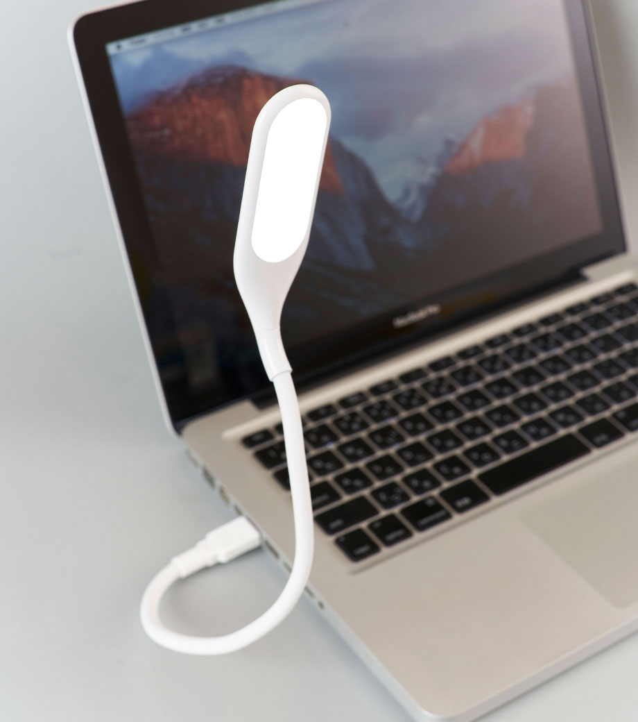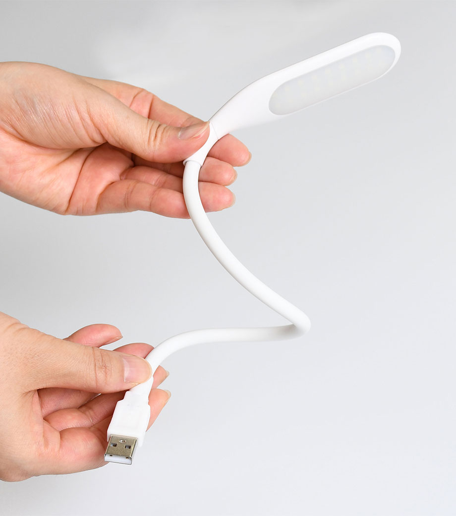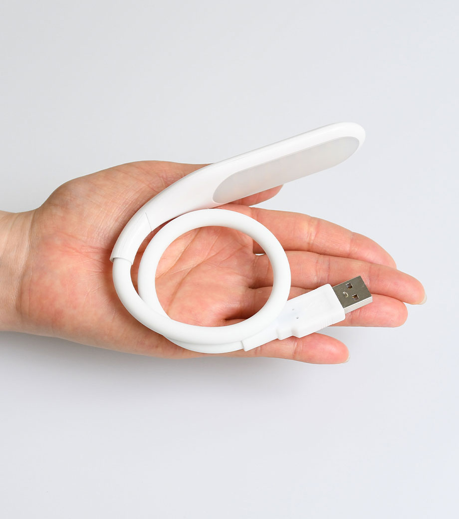 USBデスクライトは360度自由に角度調整できるアーム付きの卓上ライトです。タッチセンサー式で明るさは3段階。固定治具やケーブルが不要で、テレワークや出張先のホテルでも、パソコンのUSBポートに挿すだけですぐに使えます。約50gの軽量設計!持ち運びやすいコンパクトサイズです。