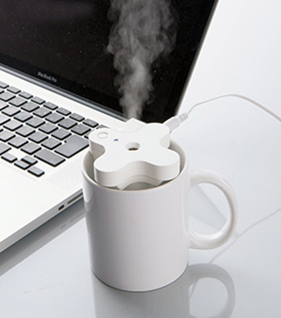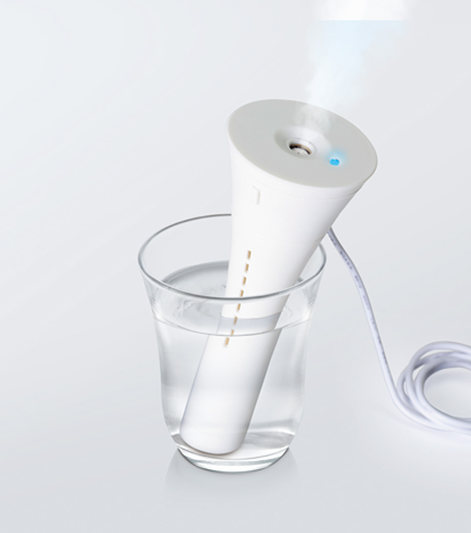 乾燥が気になるオフィスで保湿できるとメディアで大人気の商品です。ペットボトルがない時でも、マグカップに挿して使えます。空焚き防止できる6時間タイマー性です。