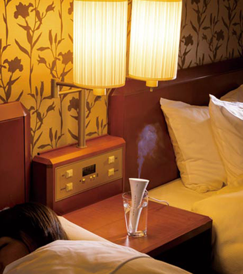 宿泊施設など名前を印刷して備品として常備してけば、おもてなしもバッチリですね。記念品ノベルティや備品としてのご利用もできるオススメ加湿器です。
