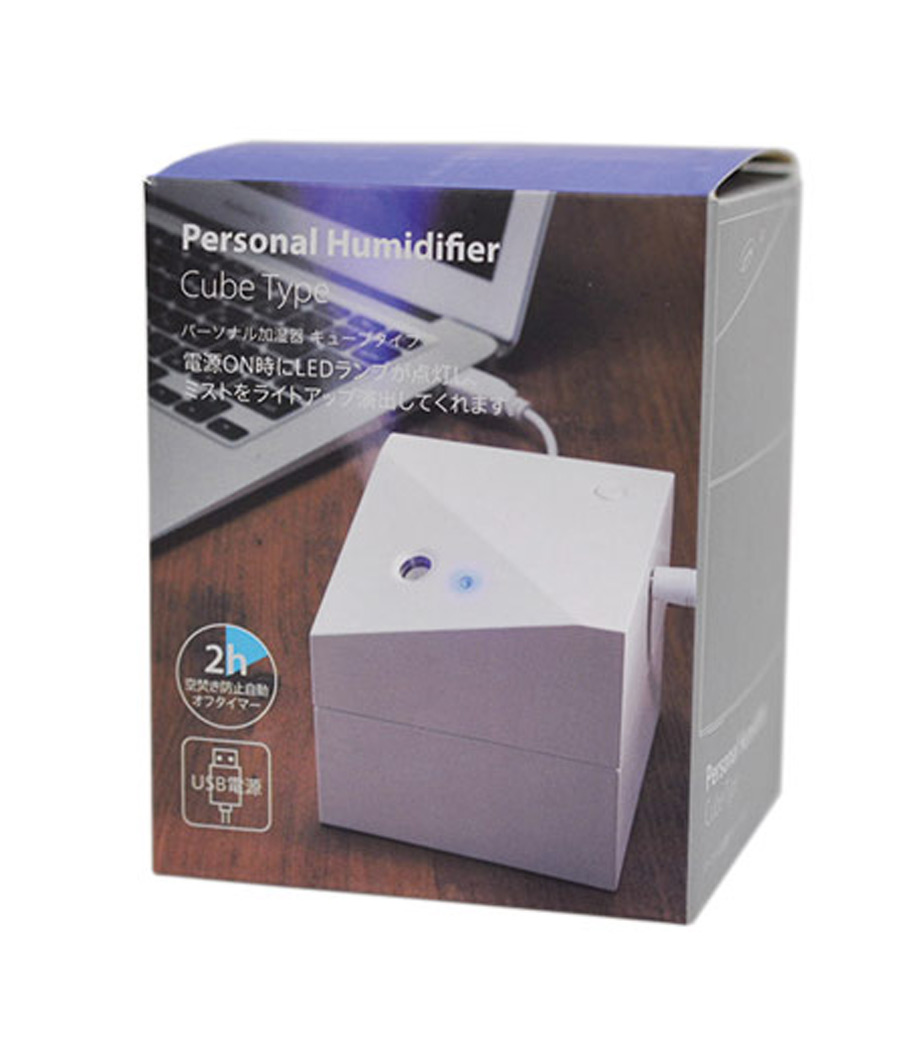 パーソナル加湿器キューブタイプはインテリアにもなる安定感のあるキューブ型加湿器。名入れは1色印刷とフルカラー印刷ができます。