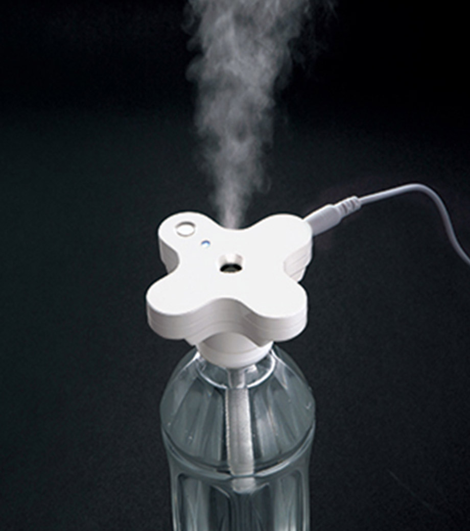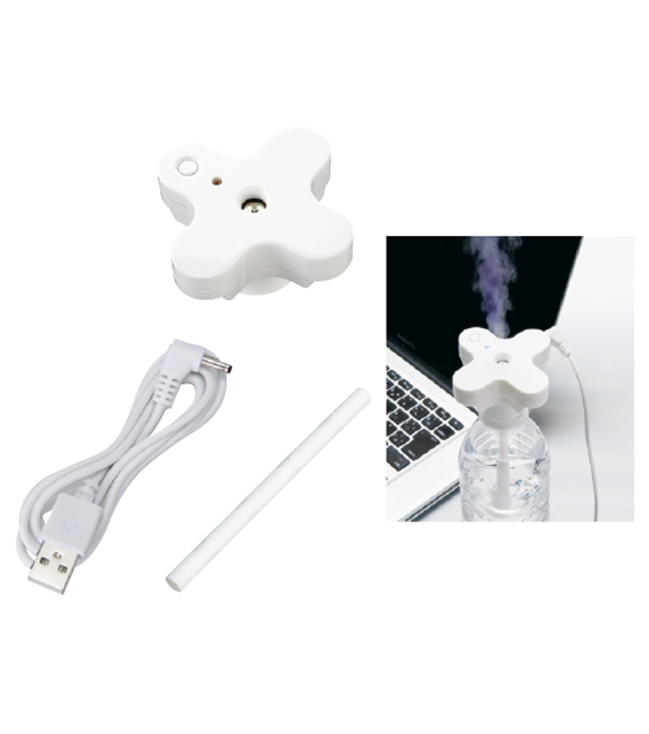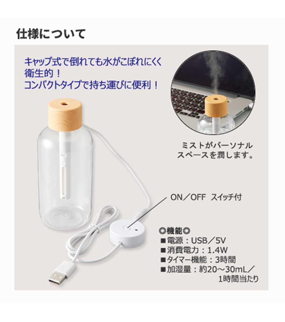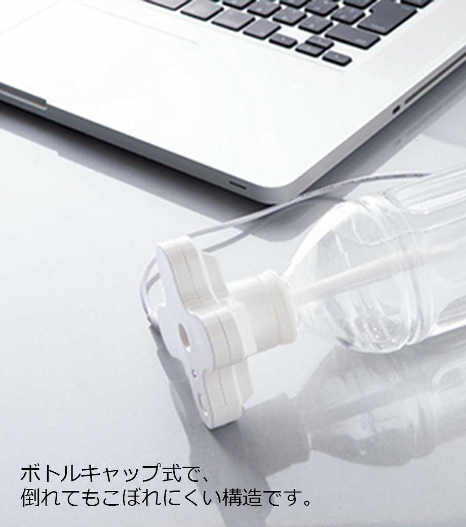 パーソナル加湿器ボトルキャップタイプはペットボトルに挿して簡単に使えるUSB電源のタイマー式加湿器。名入れは1色印刷が可能です。