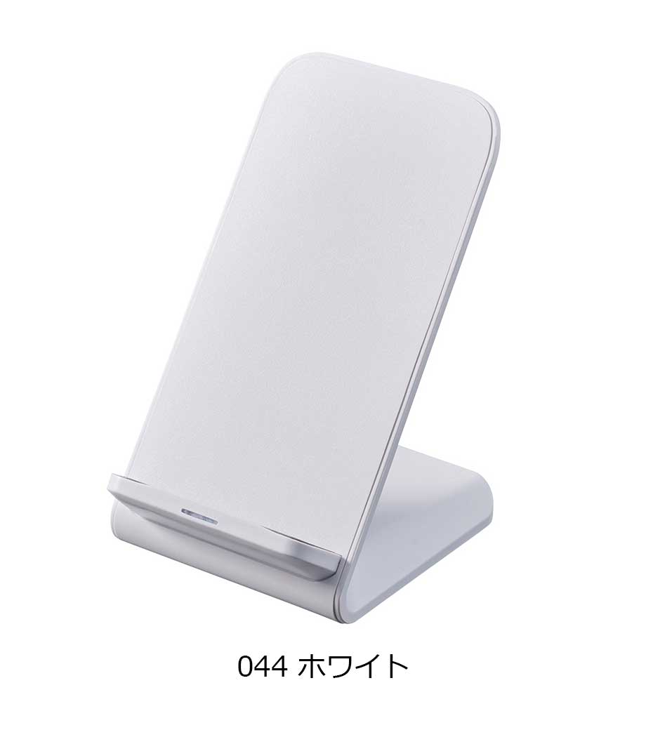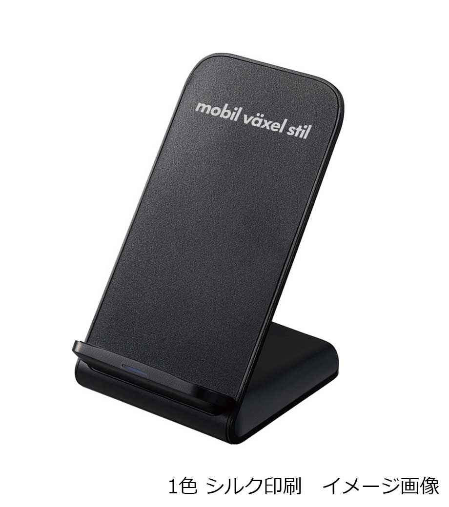Qi(チー)対応スタンドワイヤレス充電器5Wは、スマートフォンを置くだけで充電出来るアイテムです。スタンド式は自然と画面が見やすい角度になるので、電話やメールなどの連絡もキャッチしやすく便利です。スマートフォンは縦置きのほか、動画が見やすい横置きにもできます。充電しながら画面の操作ができるので、ウェブ会議やリモートワークにおすすめ。ランプは赤が通電、青が充電の表示です。名入れは1色、2色印刷が可能。社名やロゴを入れて、周年記念品や企業ノベルティグッズに選ばれます。