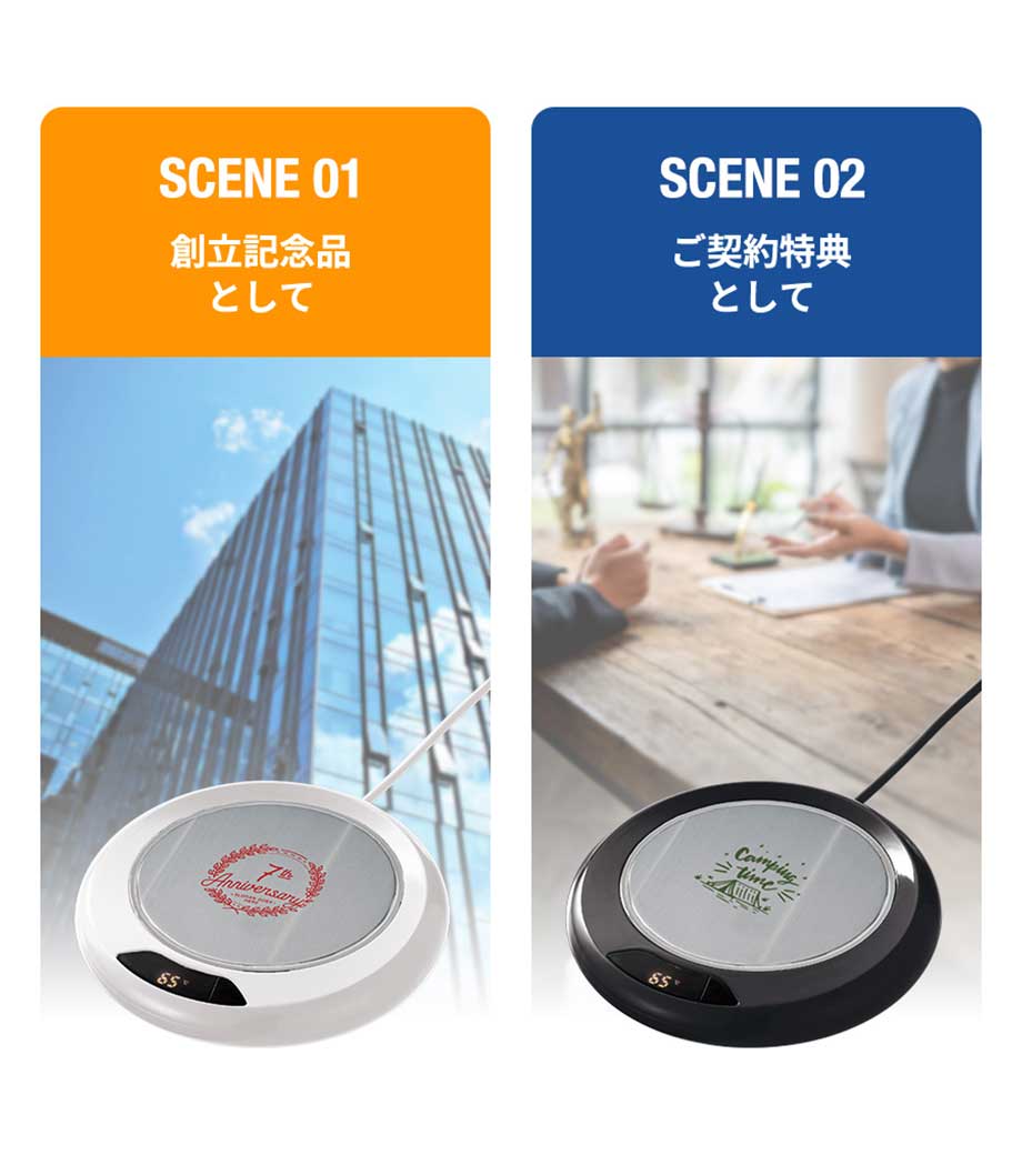 接触面に1色・2色・フルカラーで名入れできます。印刷面が広くロゴが目に飛び込みやすいので、販促効果は抜群!企業ロゴを印刷して周年記念品など、オフィスで使えるノベルティにいかがでしょうか。
