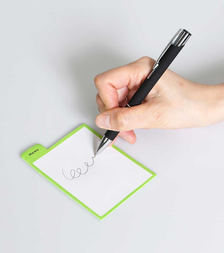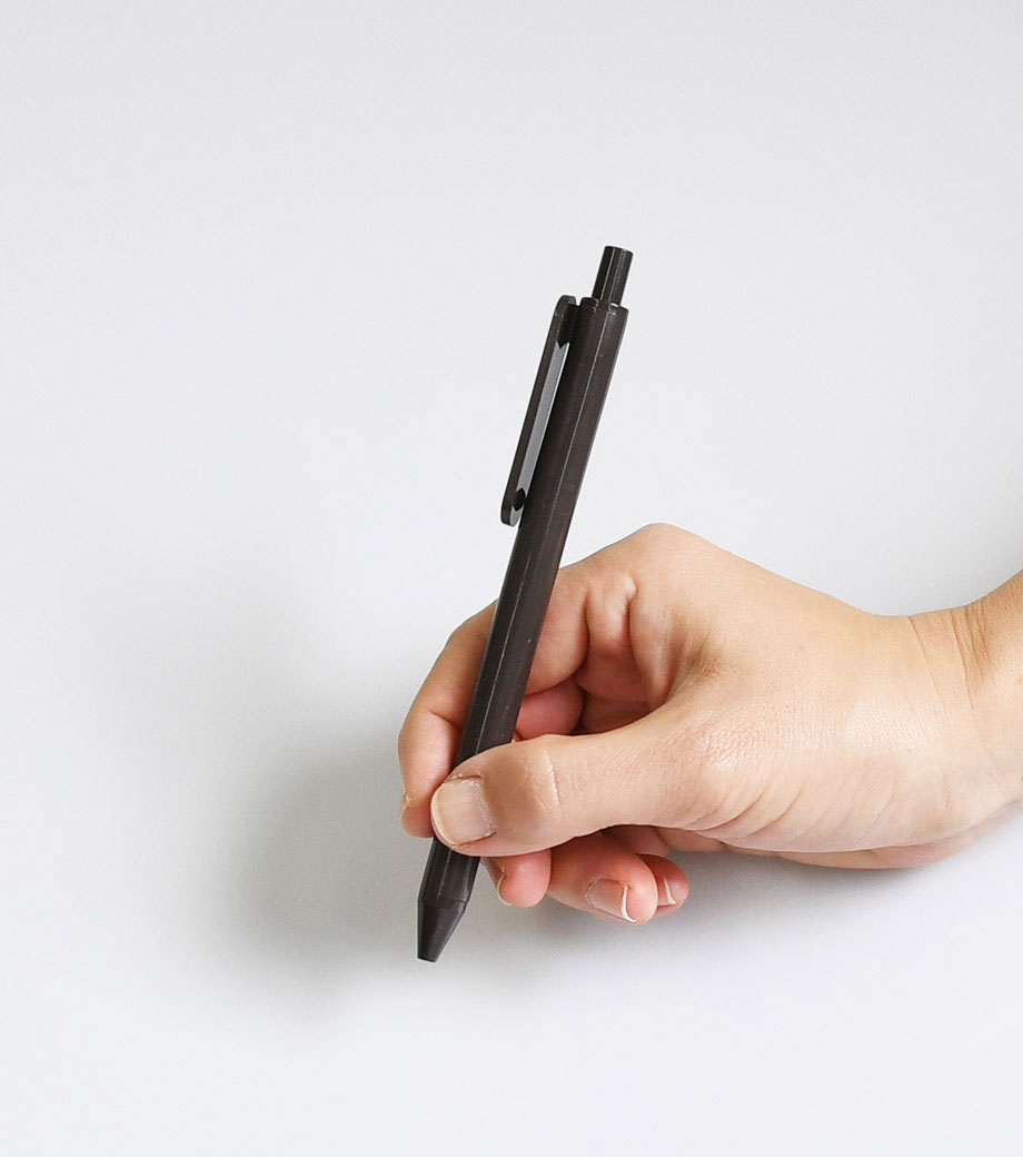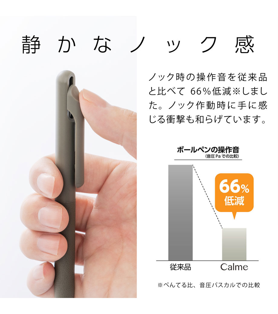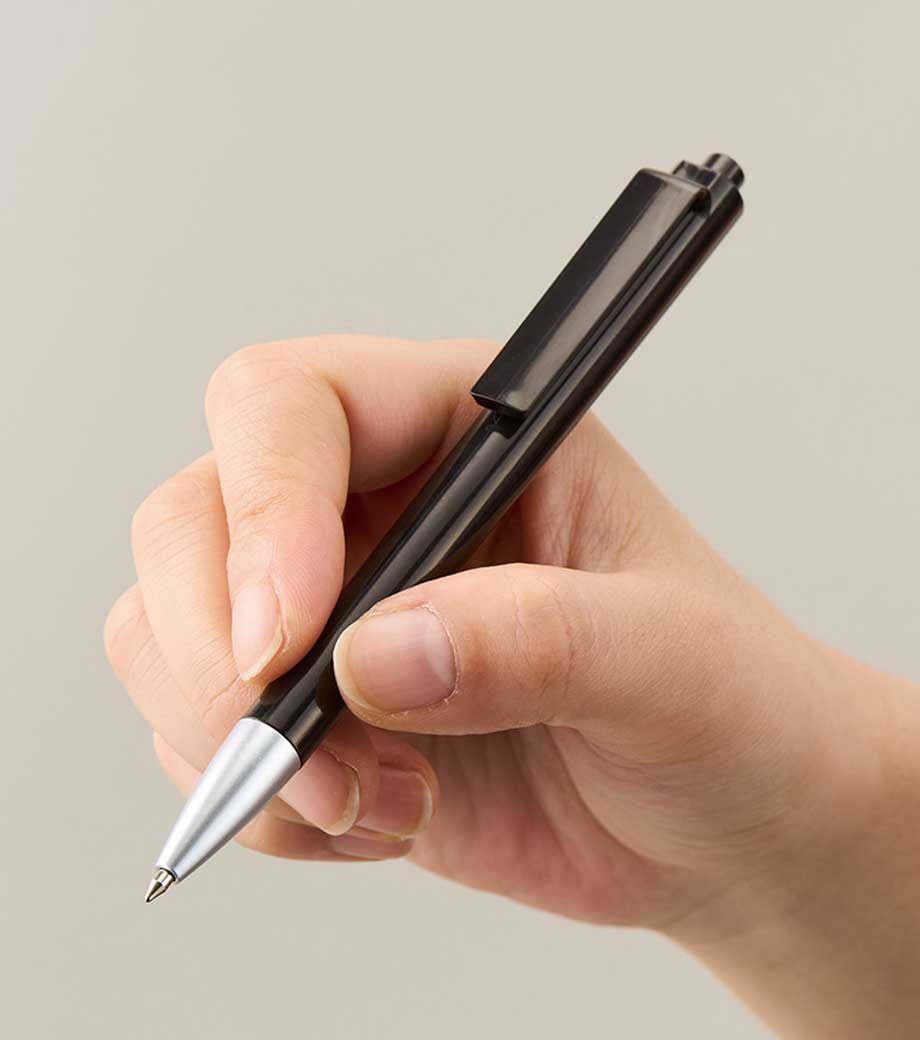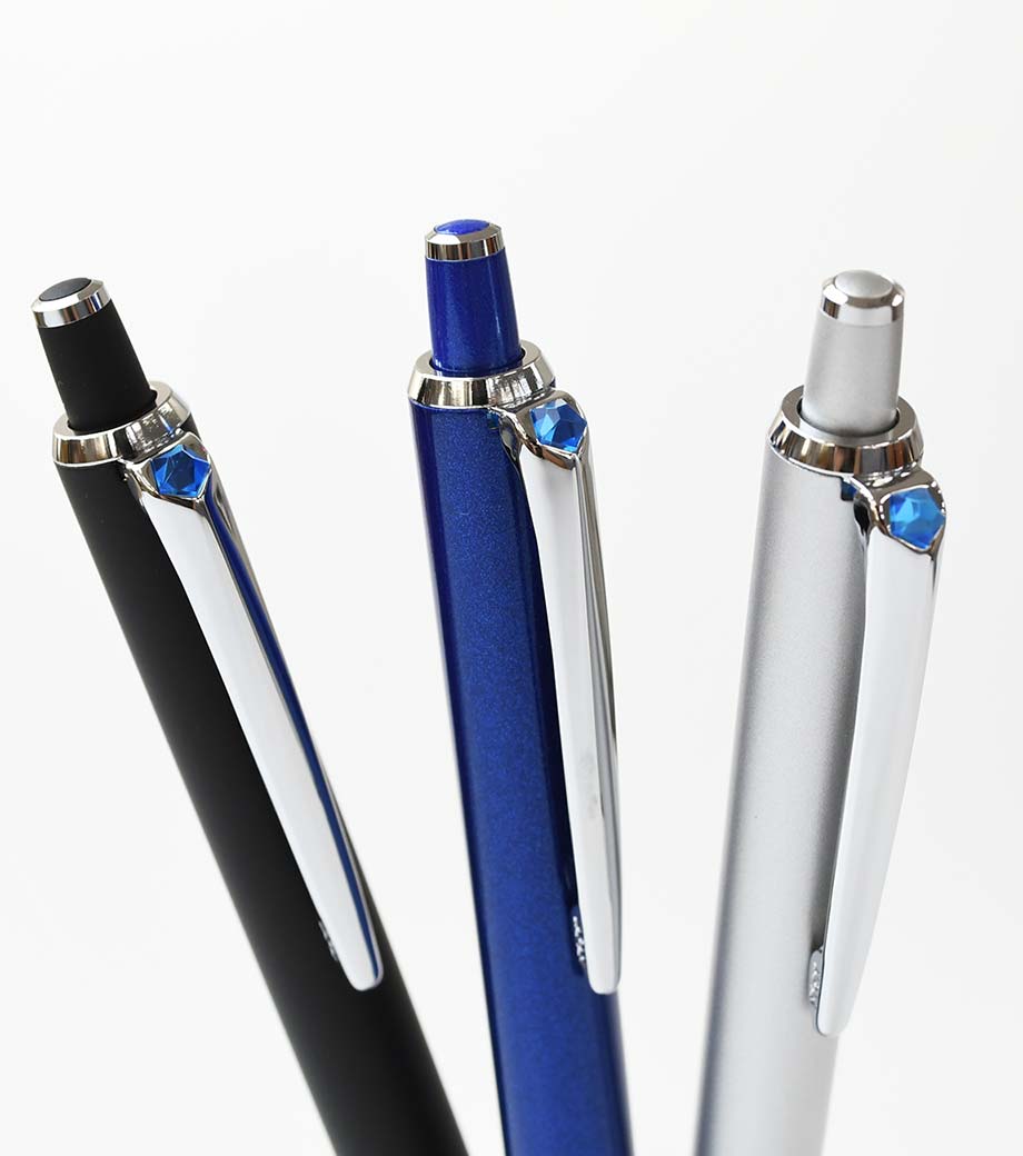 利便性の高いノック式は片手でスマートに操作できるので忙しいビジネスマンに嬉しいアイテム。ノック音やノック感はやわらかく、音が響かないので大事な会議や商談中も使いやすく便利です。本体色はベーシックで使いやすいブラック、ネイビー、シルバーの3種をご用意。