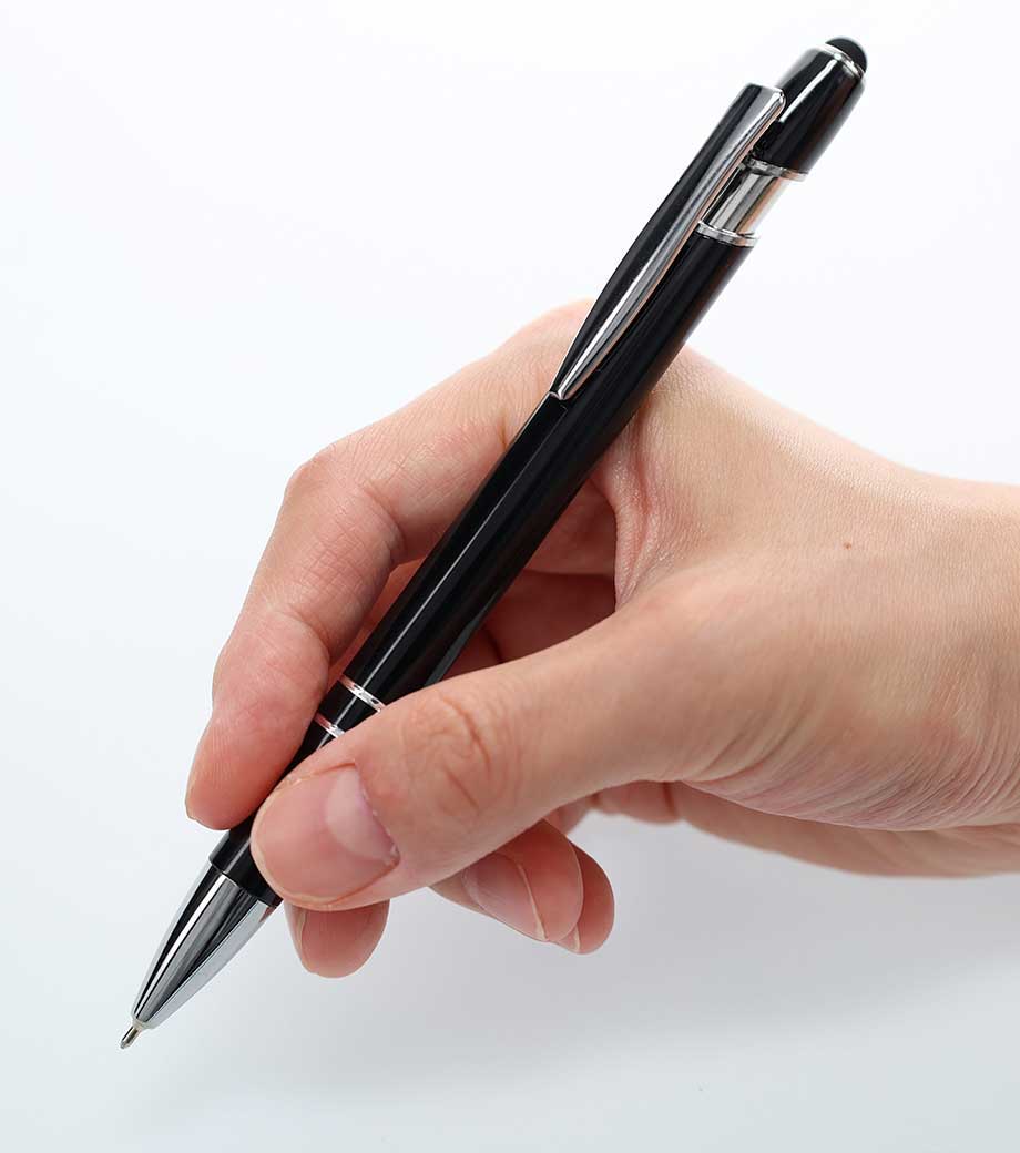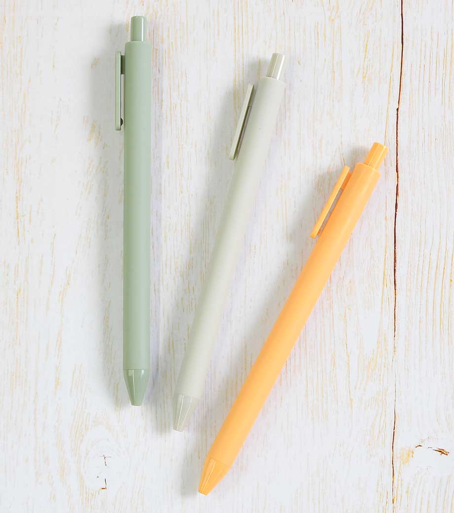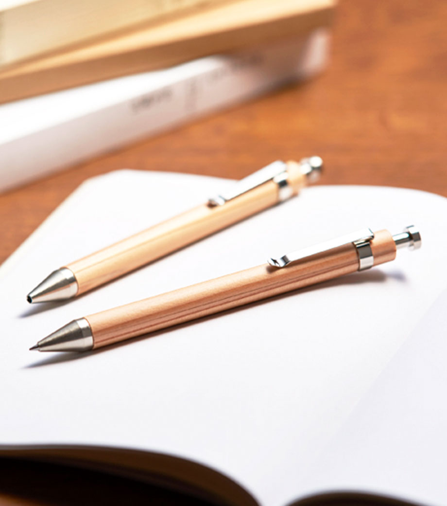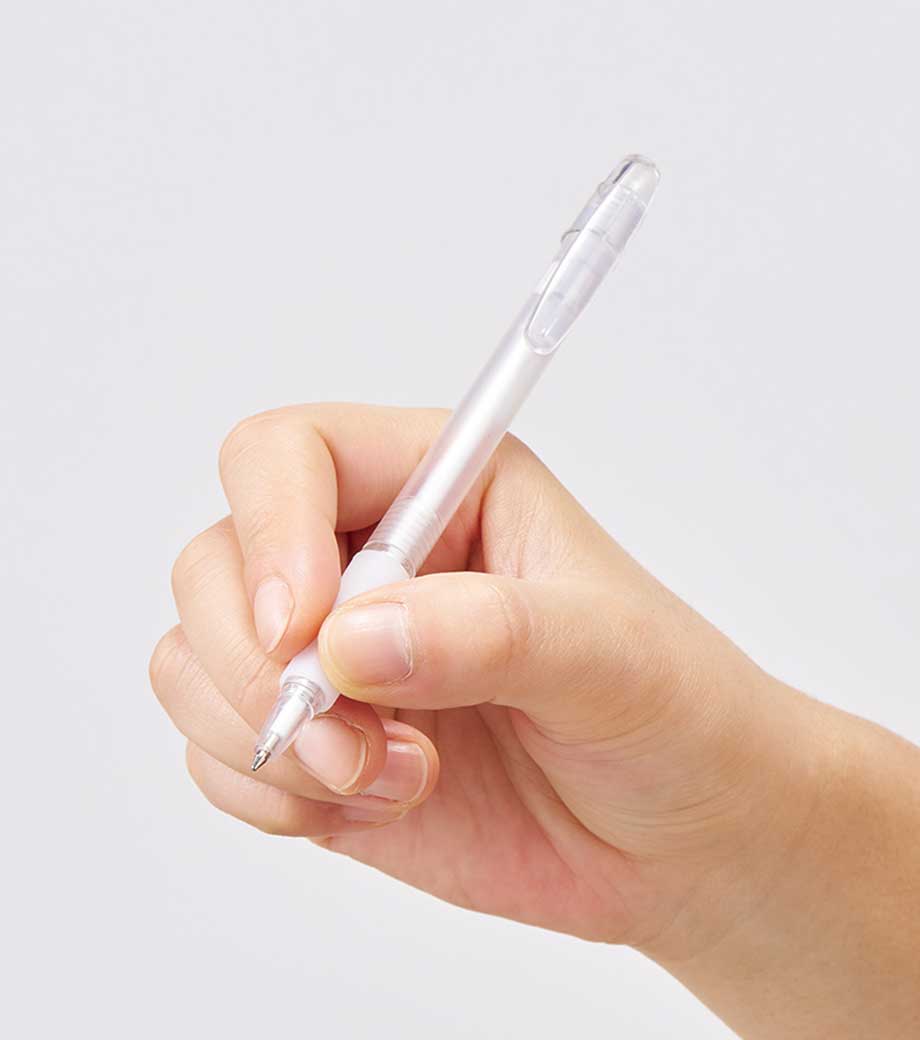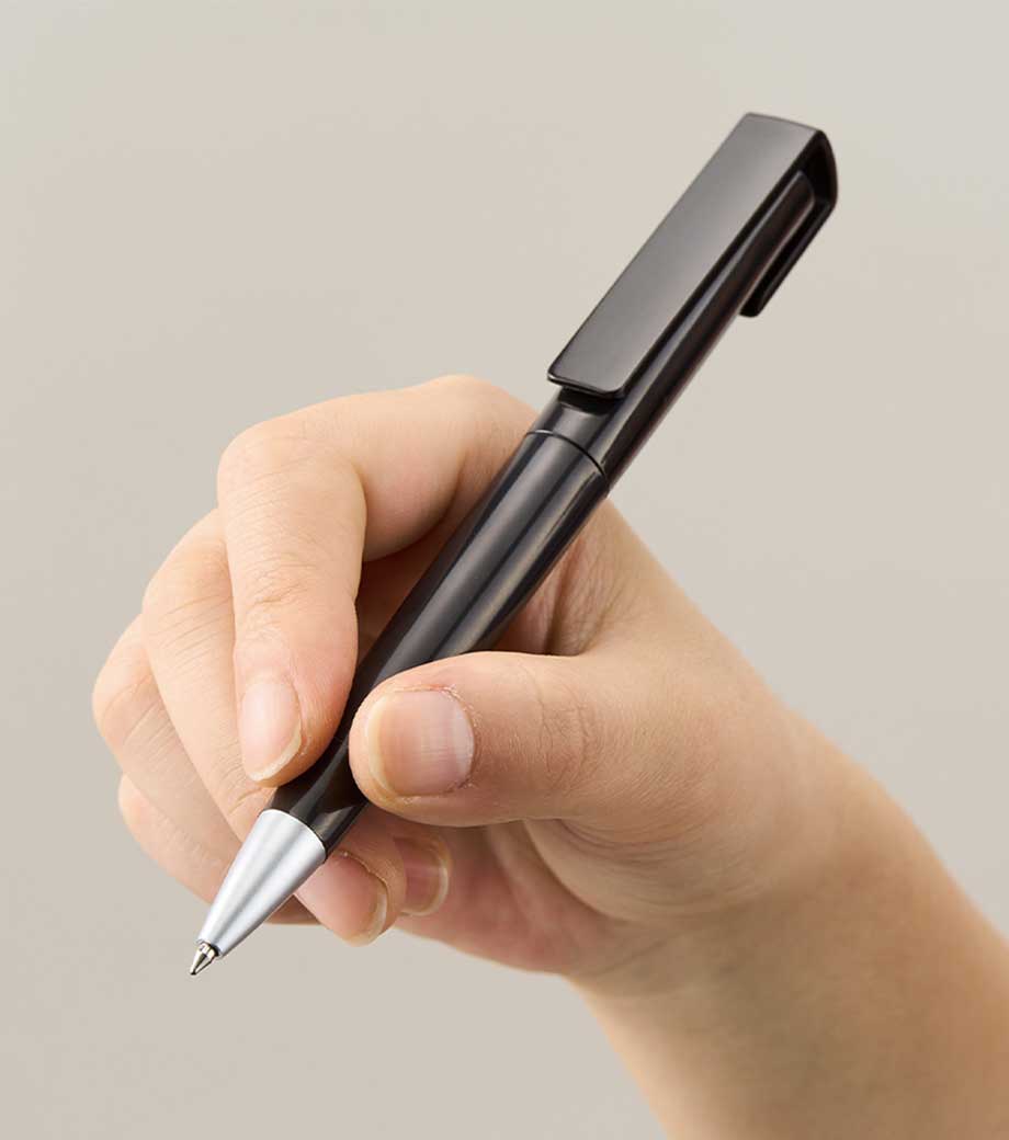利便性の高いノック式は片手でスマートに操作できるので忙しいビジネスマンに嬉しいアイテム。ノック音やノック感はやわらかく、音が響かないので大事な会議や商談中も使いやすく便利です。本体色はベーシックで使いやすいブラック、ネイビー、シルバーの3種をご用意。