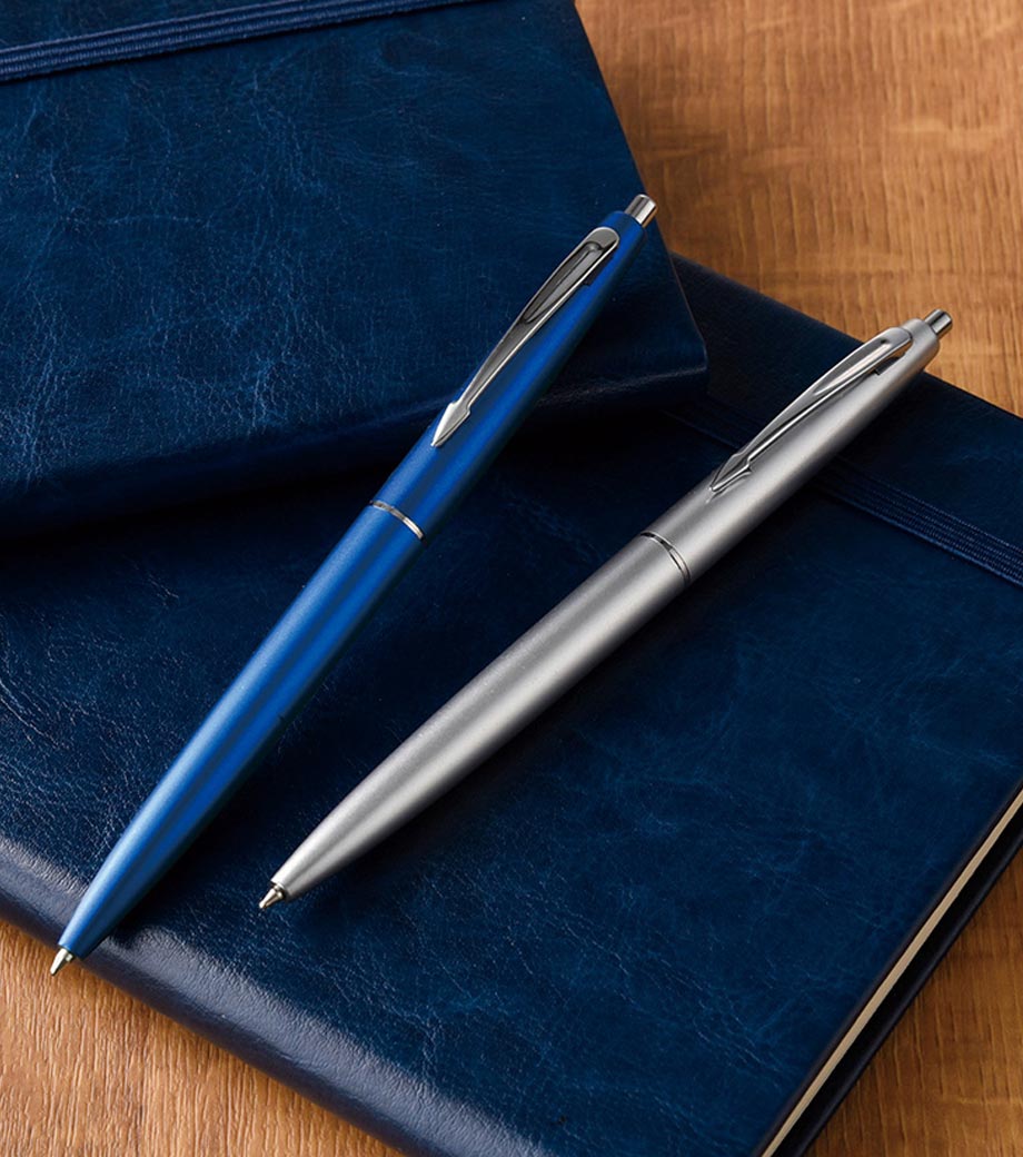 メタリックBPは、 美しいボディカラーが際立つ、すっきりシンプルなデザインの油性ボールペン。