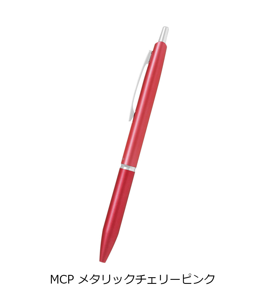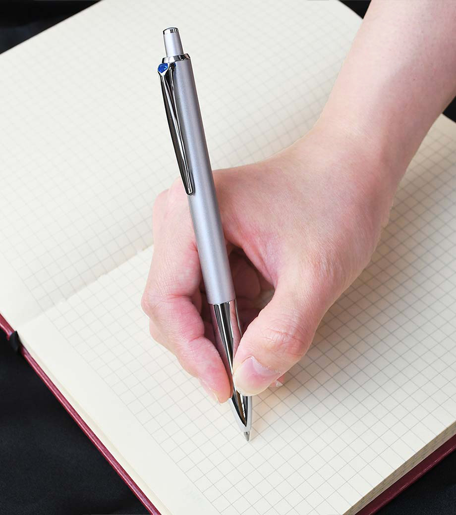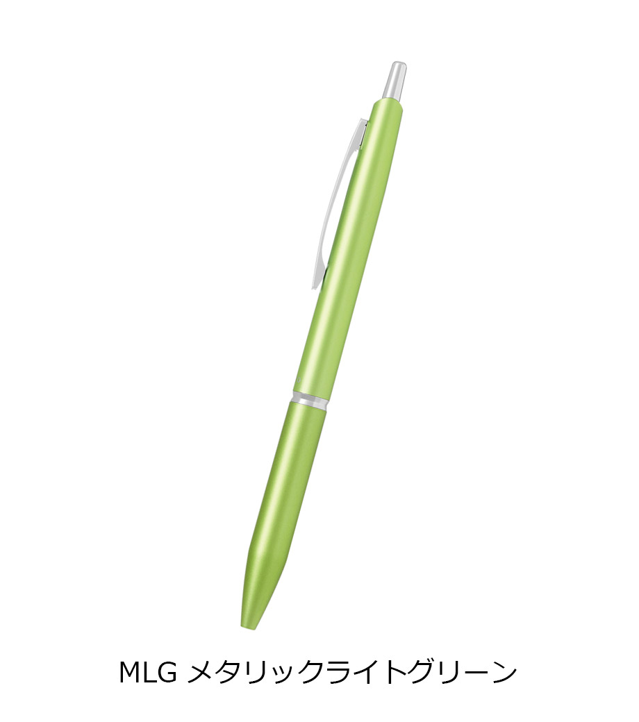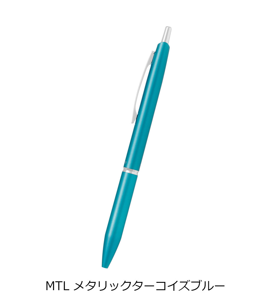 シャープな印象のメタリック風カラーのボールペンは、4色からお好きな色を選べます。本体はわずか約6g!とても軽く、長時間の筆記も腕に負担がかかりません。
