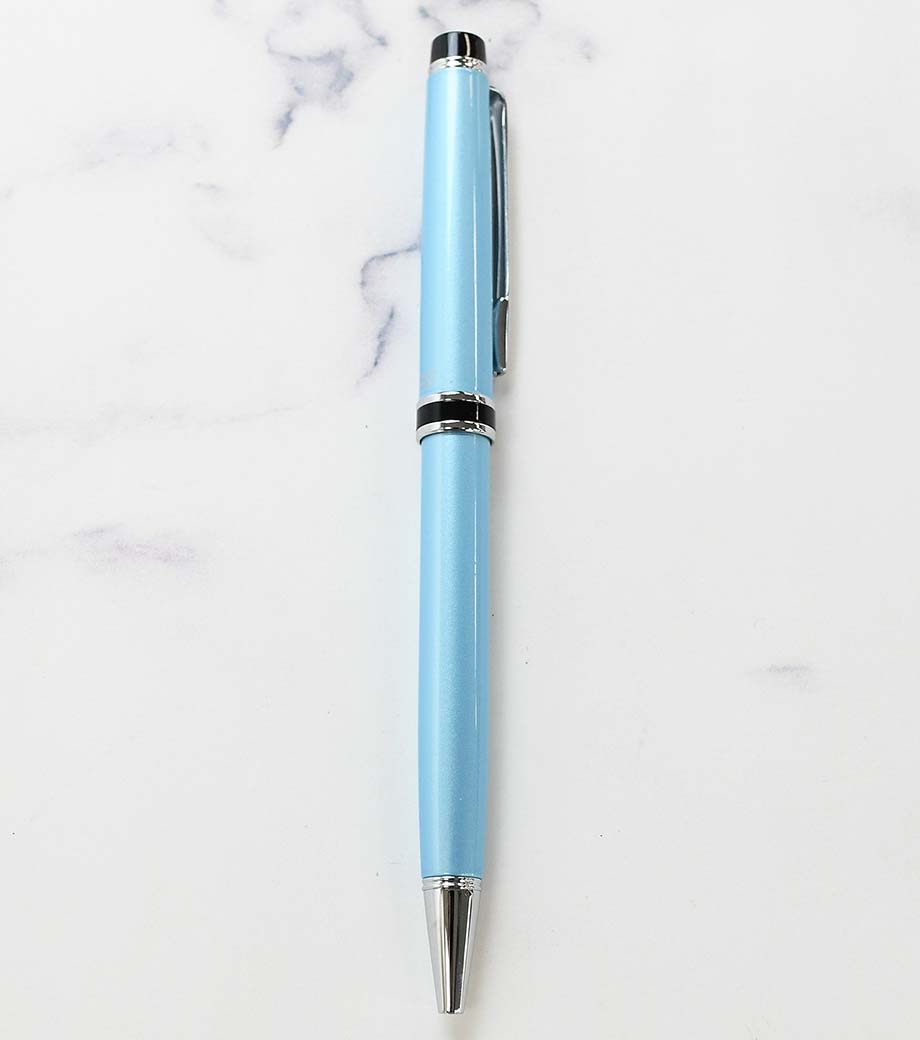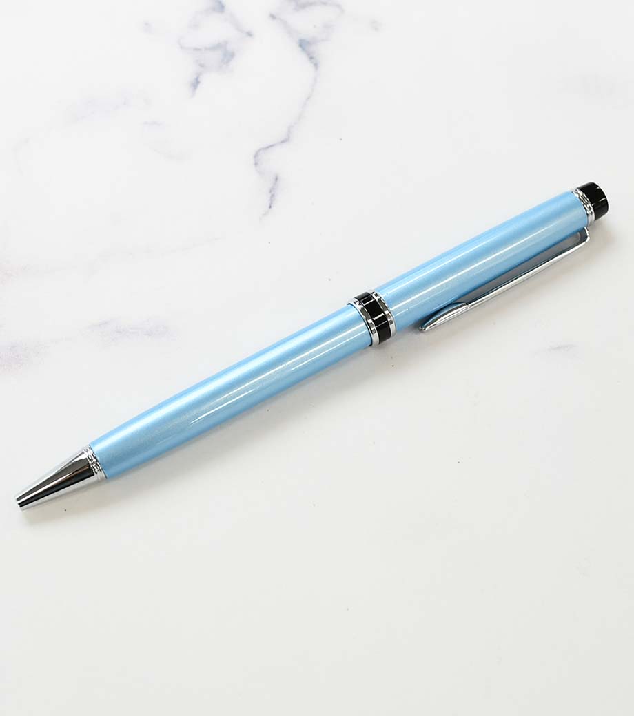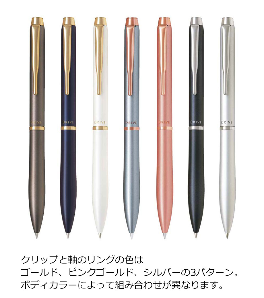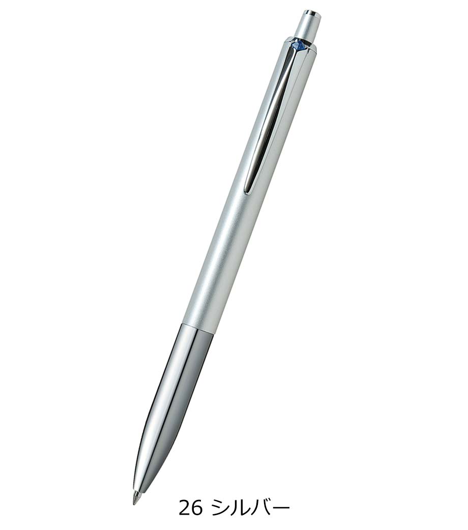 シャープな印象のメタリック風カラーのボールペンは、4色からお好きな色を選べます。本体はわずか約6g!とても軽く、長時間の筆記も腕に負担がかかりません。