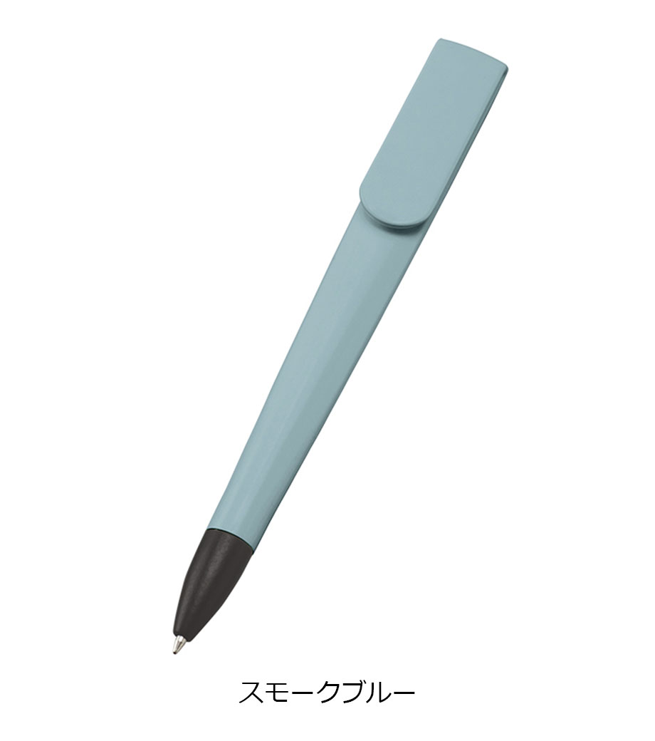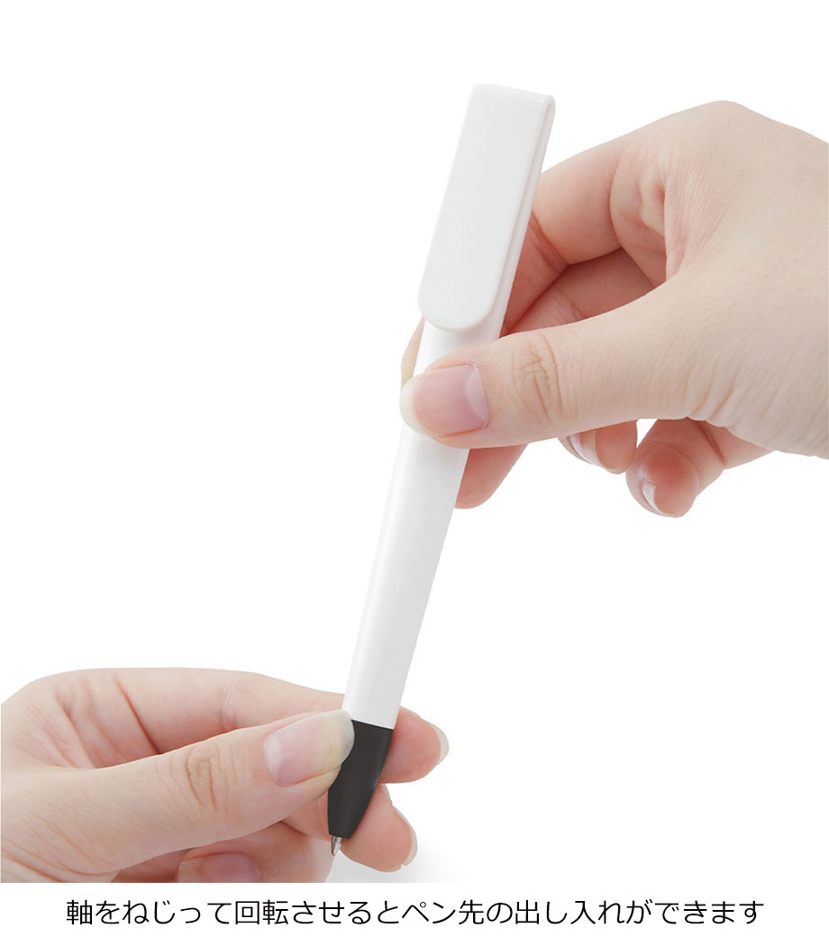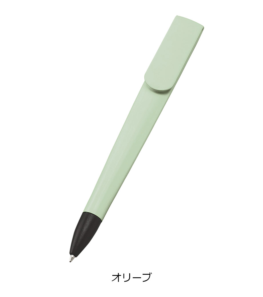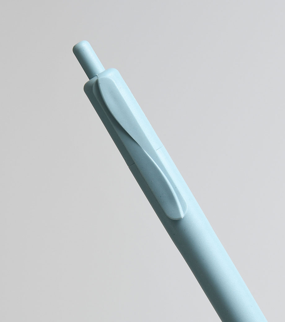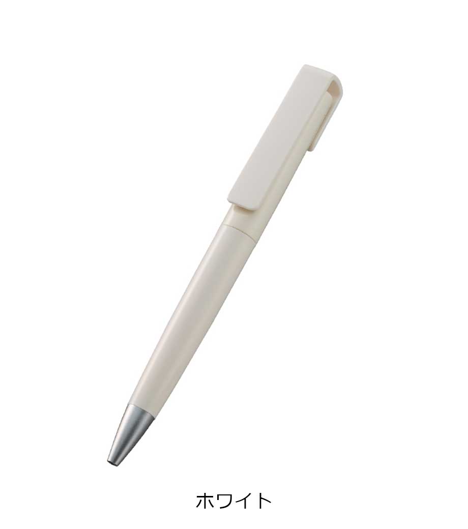 ノートに挟んで持ち運びに便利なボールペン。しおり代わりに開きたいページもすぐに確認できます。素材に不要になったABSを再利用した、環境に優しいサスティナブルな商品です。企業カラーやスクールカラーに合わせボディカラーが選べるのも魅力。ペン先は回転繰り出し式なので、音がほとんどせず静かです。