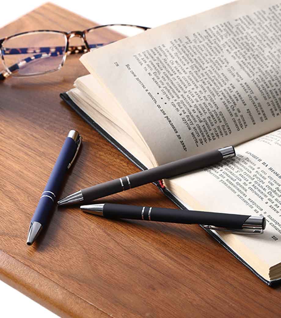 社名やロゴを印刷すればオリジナルペンを作成できます。記念品や贈り物にいかがですか。