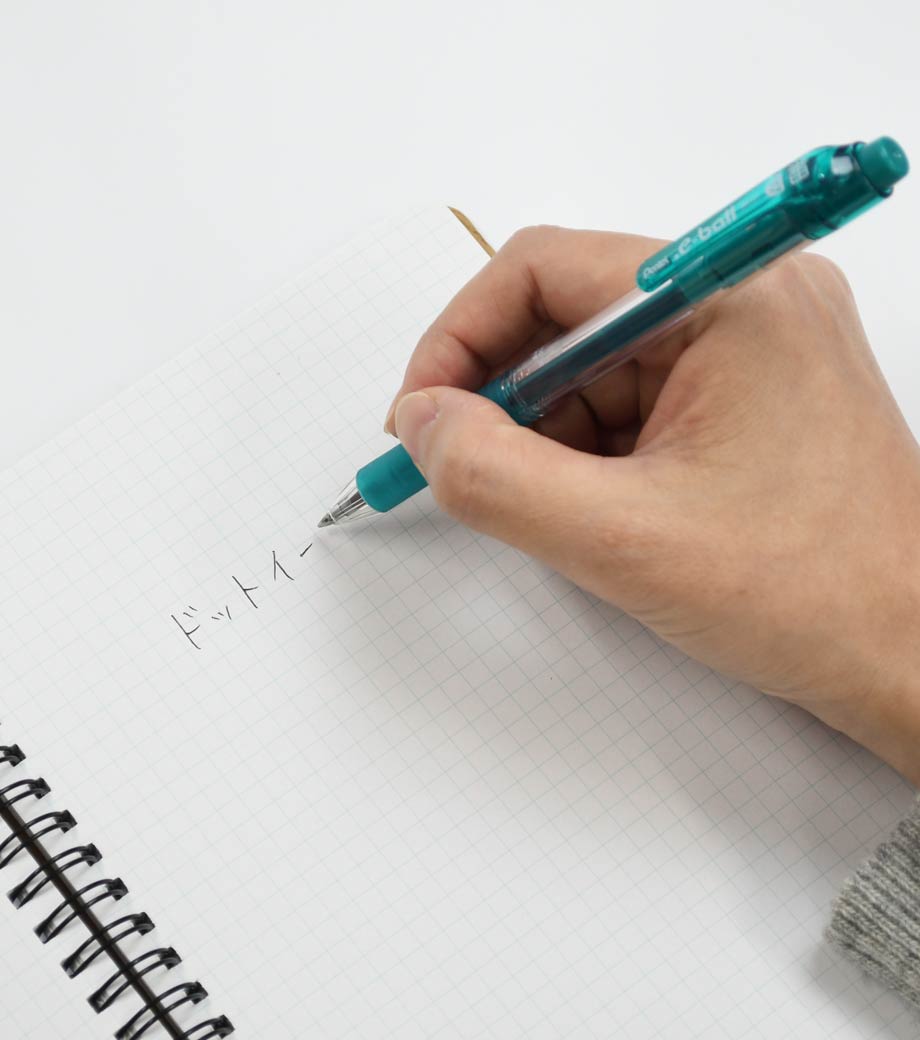 同じ形状で使いやすいペアデザイン「ぺんてる ドット・イー シャープペン」もおすすめです。