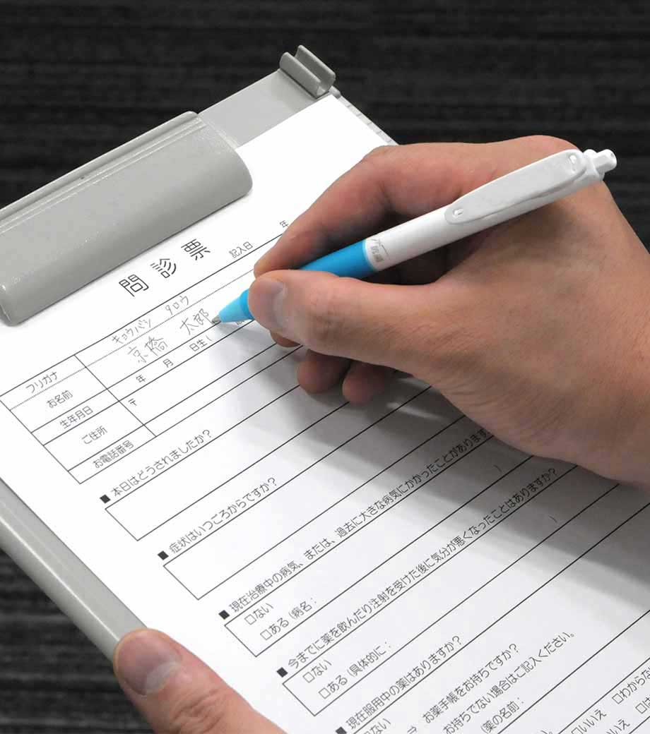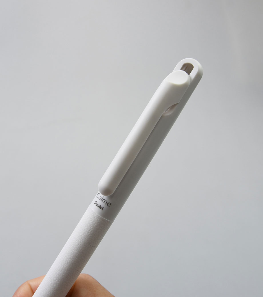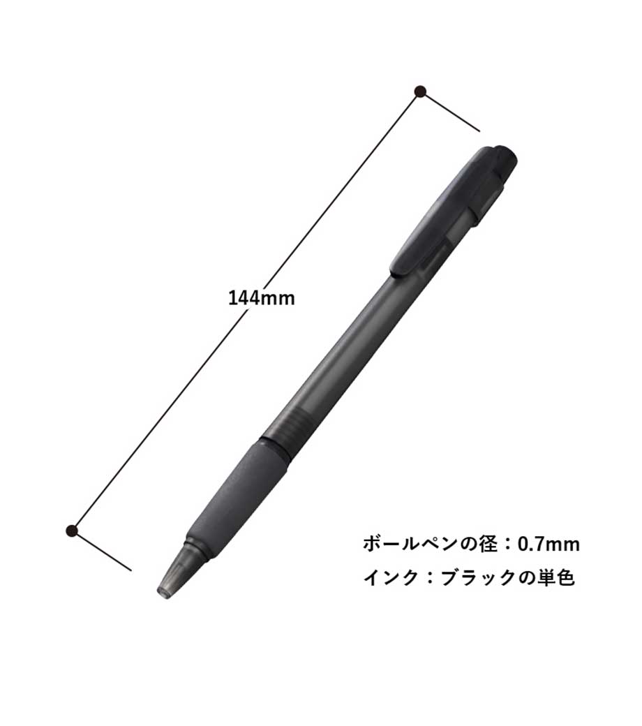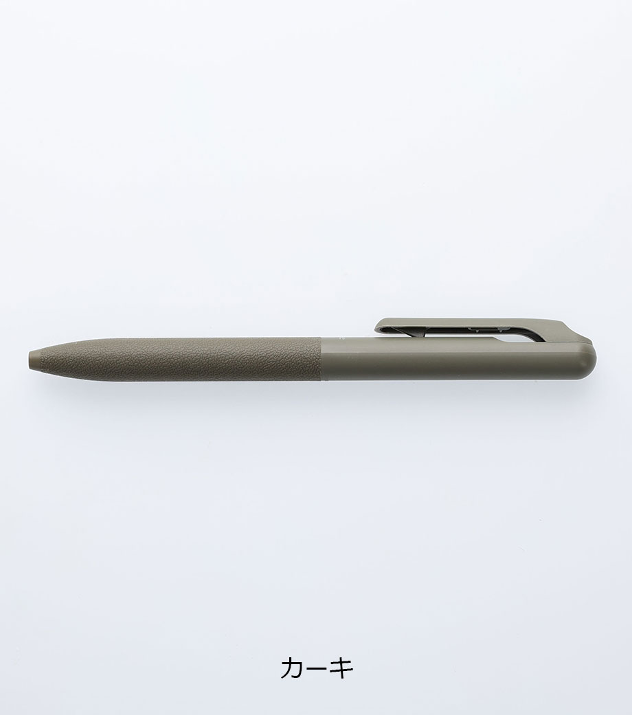 軽い力でもブレずに濃い文字が書ける、ペン先0.7mmの油性ボールペン。接客時など立ったままの筆記に重宝します。丈夫でスタイリッシュな金属クリップ。可動部にスプリング搭載してあるので軽い力で挟みやすく、薄いのでノートに挟んでもスッキリ納まります。