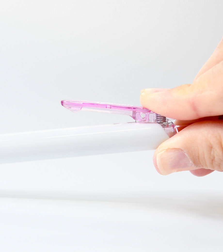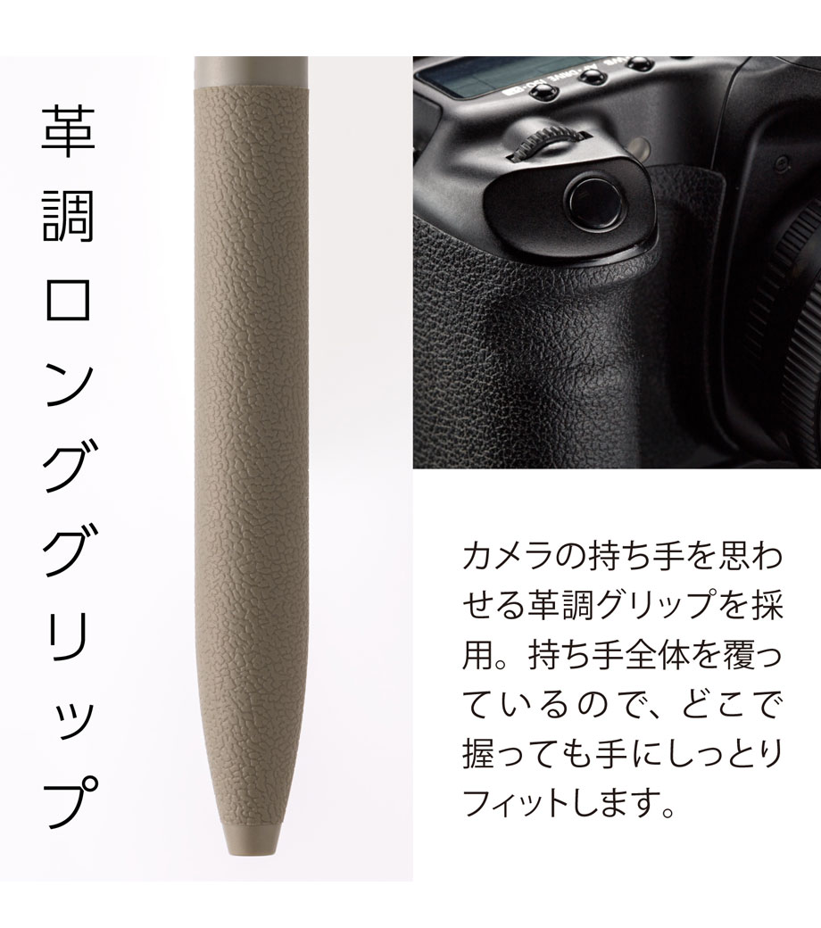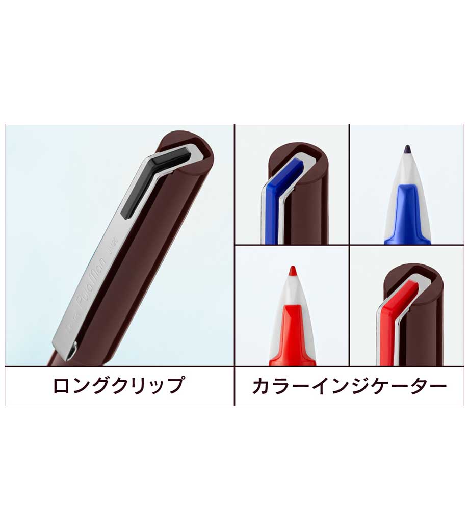 従来のノック式のレフィルに比べ、インク量が45%アップしたロングレフィルを搭載。インクが長持ちするのでボールペンを良く使う事務職の方にオススメです。可動式リフトクリップは、メーカー試験データより10万回挟んでも壊れない優れモノ。ノートや会議資料、胸ポケットに挟んでもしっかりとホールドしてくれます。
