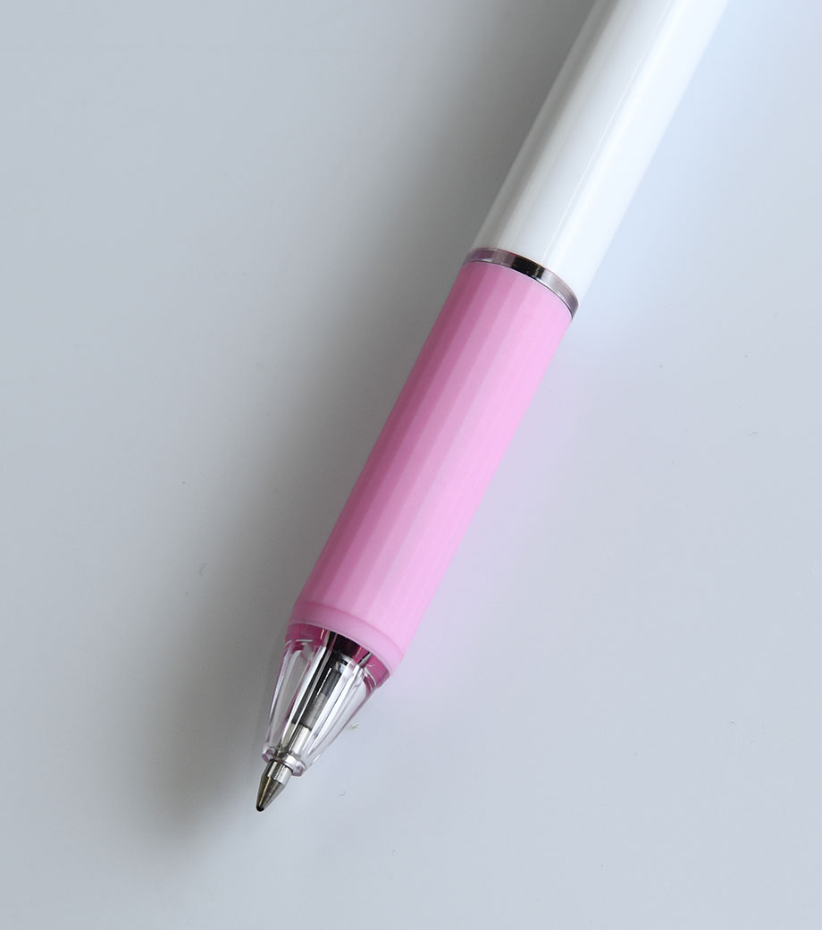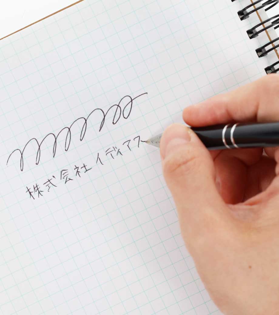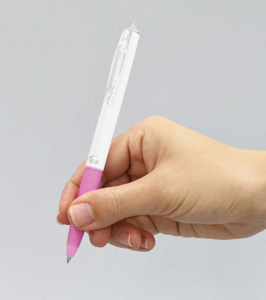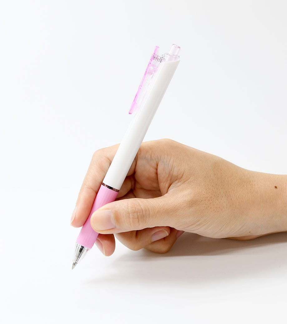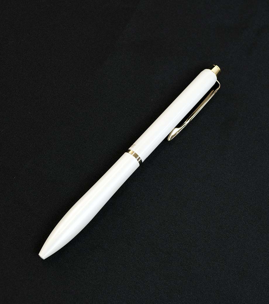 インクは乾きやすくかすれにくいのが特徴のエマルジョンインクを採用。エマルジョンインクは油性インクと水性インクを「7:3」で配合した、まさに油性と水性の"いいところどり"なインクです。1色印刷とフルカラー印刷(白軸のみ)ができるので、会社名や学校名を入れればオリジナルのボールペンが作れます。
