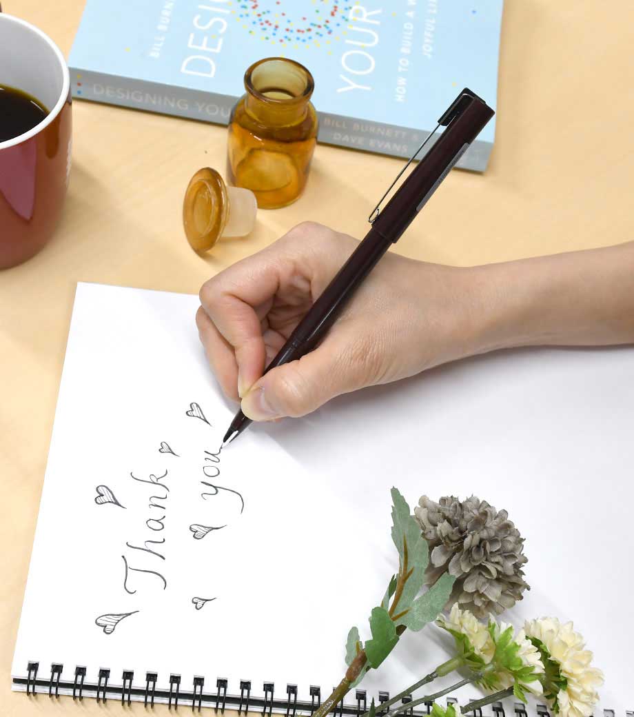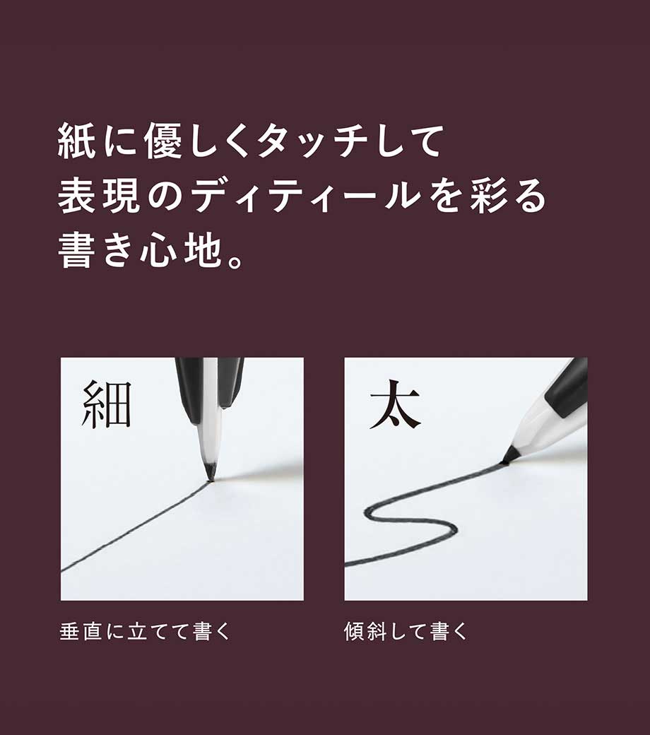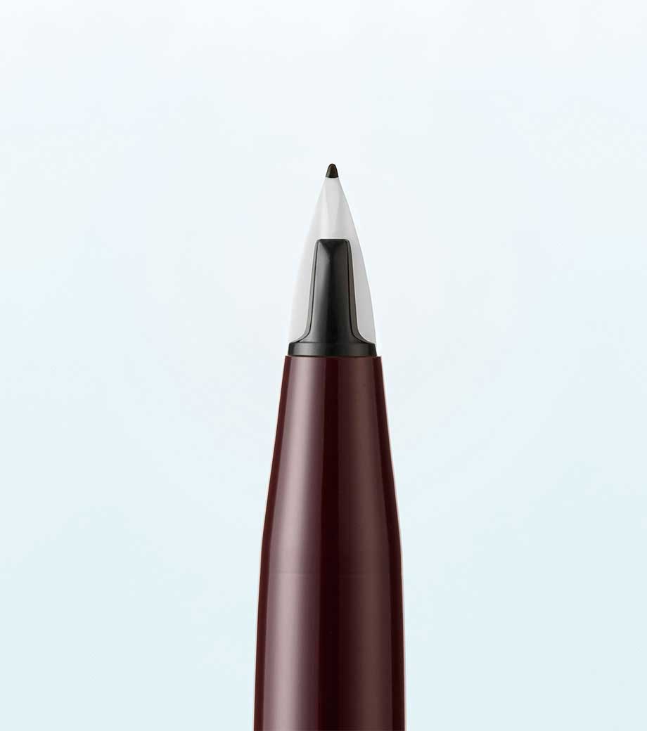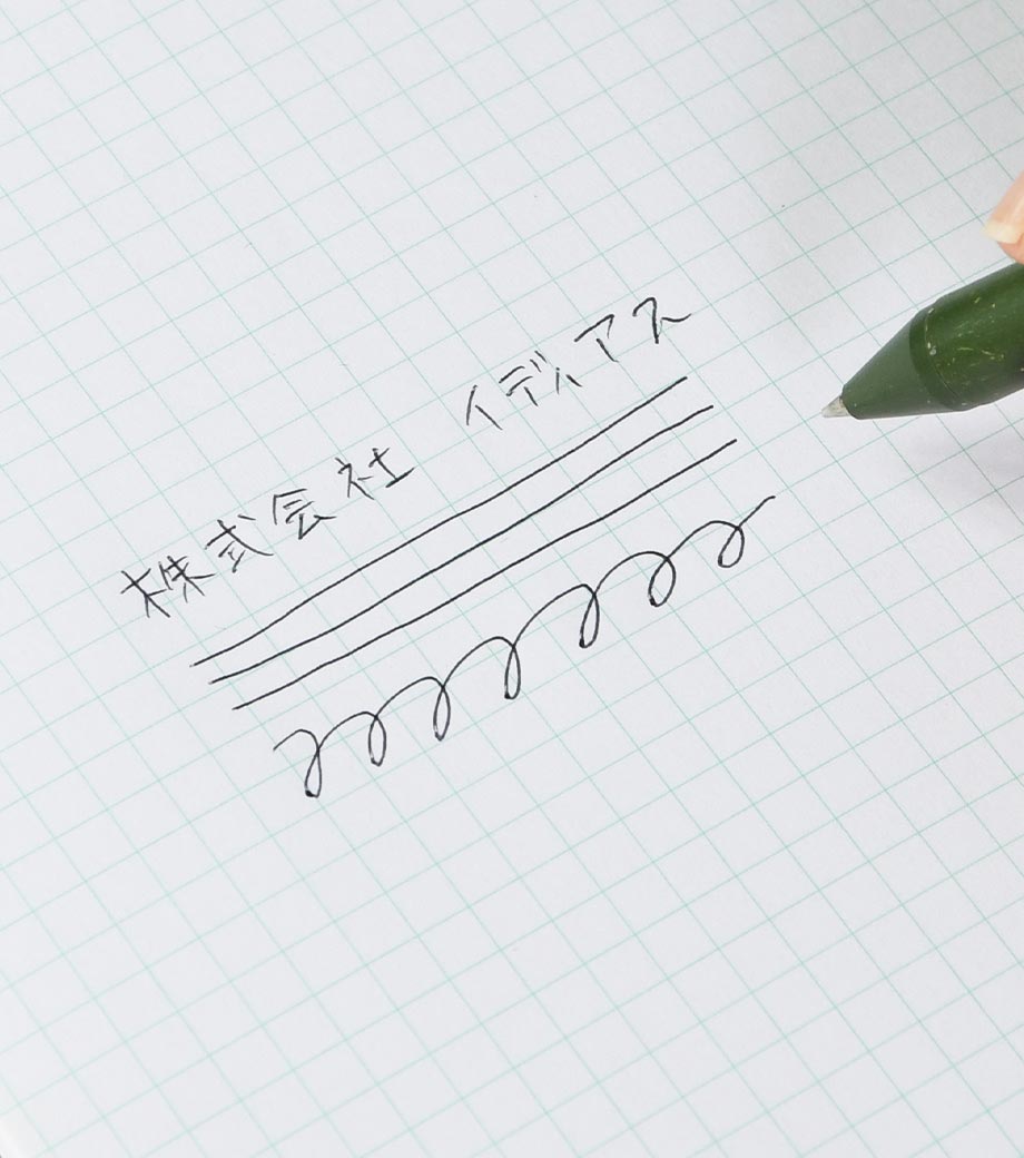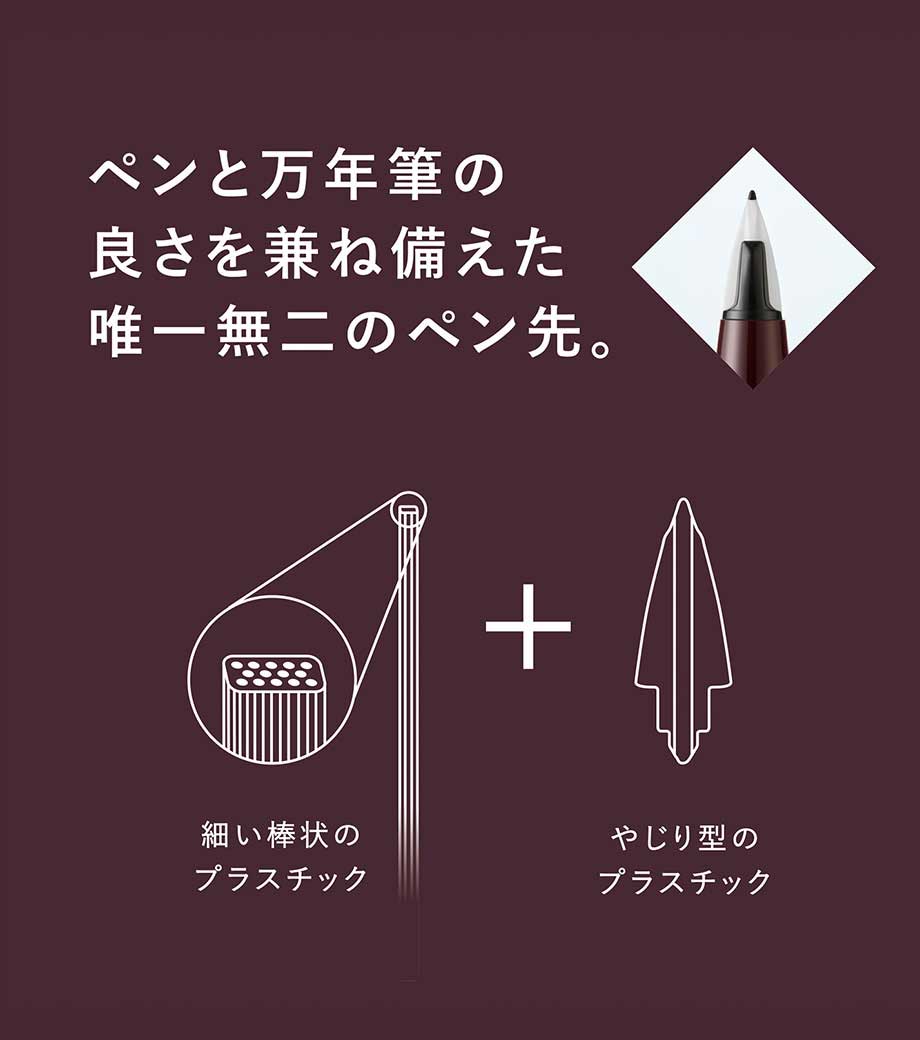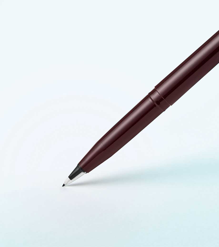 キャップスライド式で、キャップ部分を押すと芯が出ます。片手でさっと取り出してスマートに書き始められますよ。程よい重さのボディは、長時間の会議や商談にも適しています。低粘度高発色の「アクロインキ」搭載で書き出しからなめらか。長く愛用したくなる1品です。