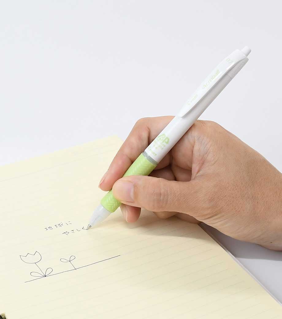 ※グリップ部に海洋プラスチック、軸にリサイクル樹脂を使用しているため、生産時期により色味にバラツキが生じます。本体に小さな黒点が見られる場合があります。