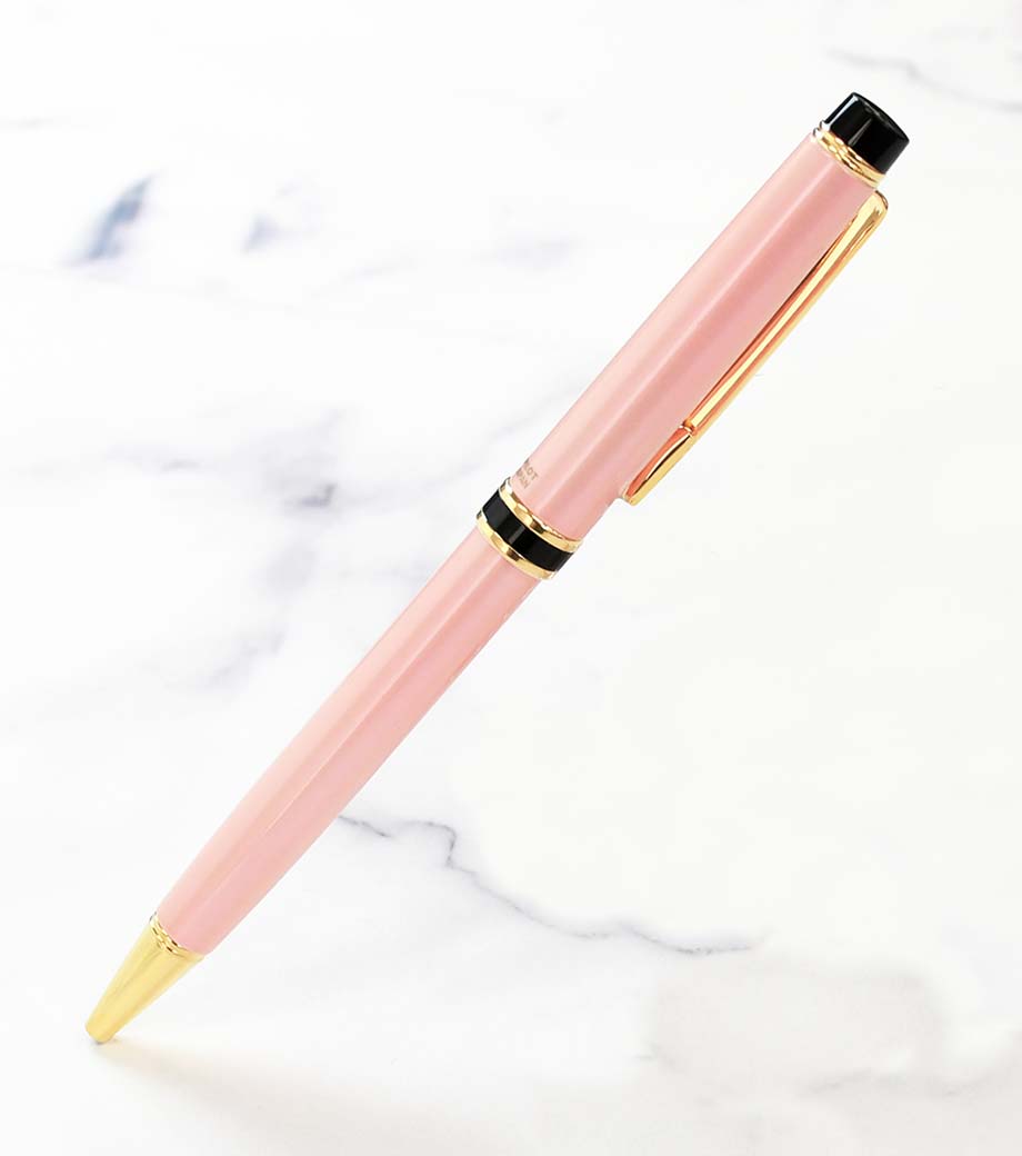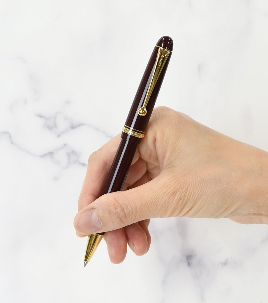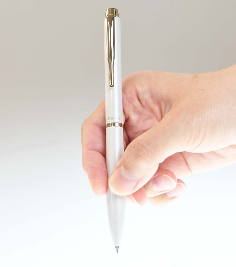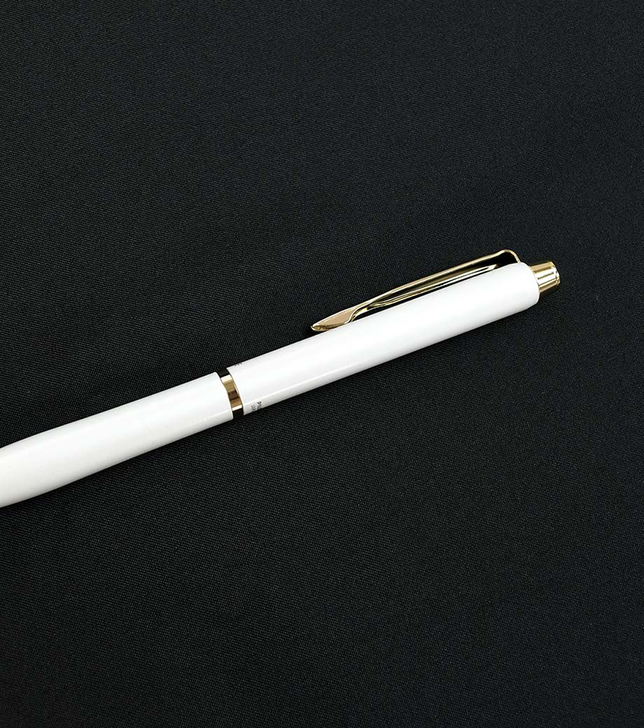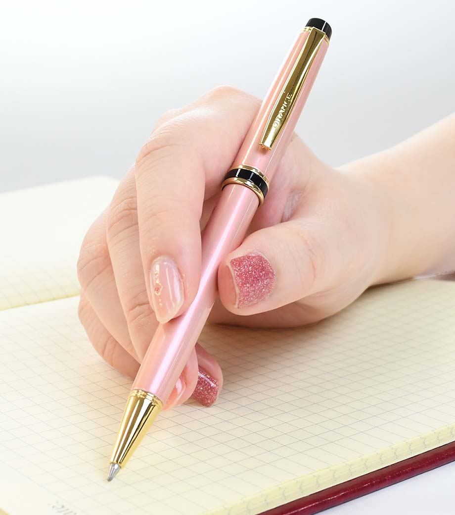 スリムなボディは女性の手にも握りやすく、持ち運びにも便利。手帳用としてもおすすめです。ペン先は回転繰り出し式。ノック音が鳴らない回転繰り出し式はペン先を出す所作も優雅です。大事な商談や会議の場でもスマートに取り出して使えますよ。長く愛用したくなる大人の女性のためのボールペンです。