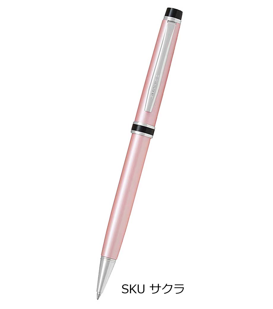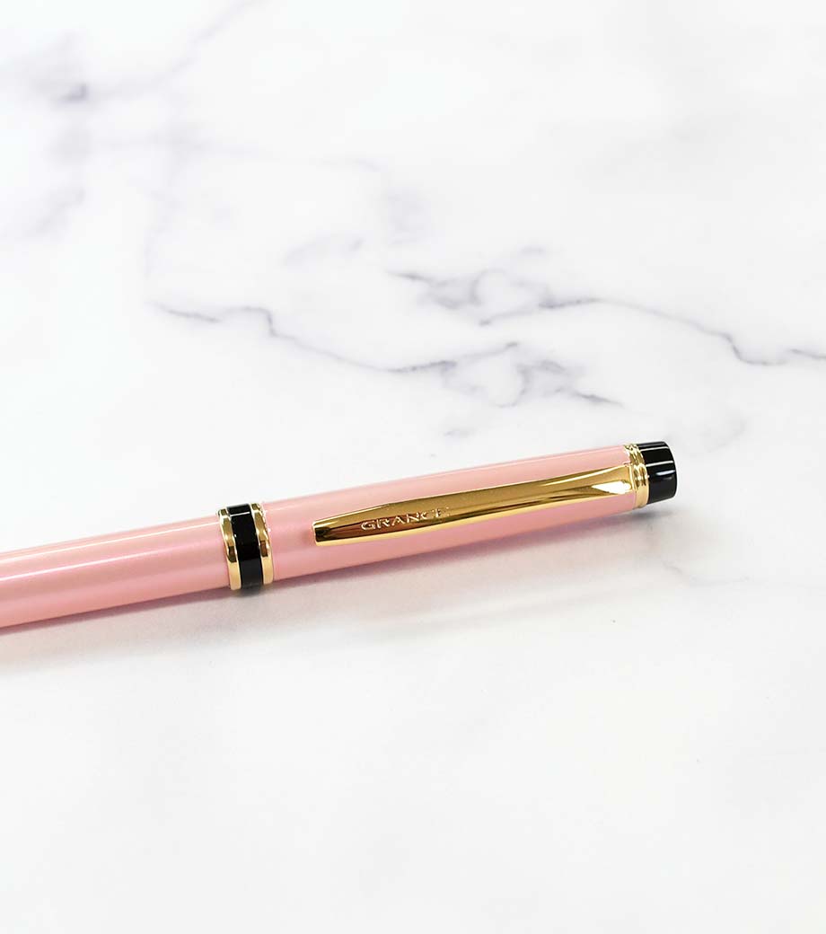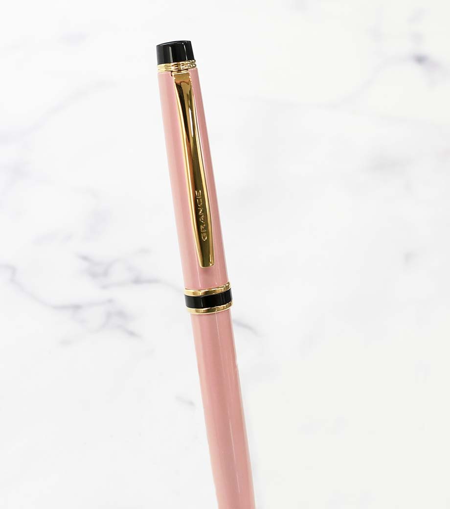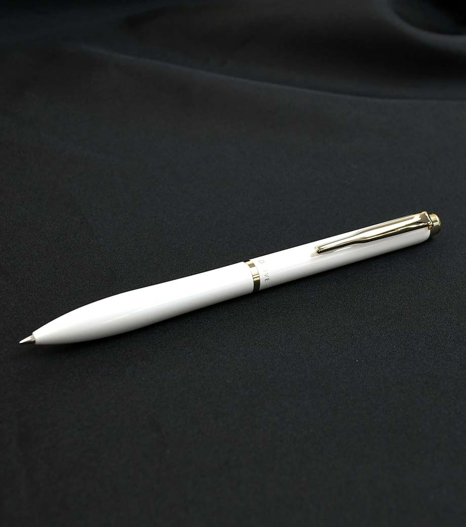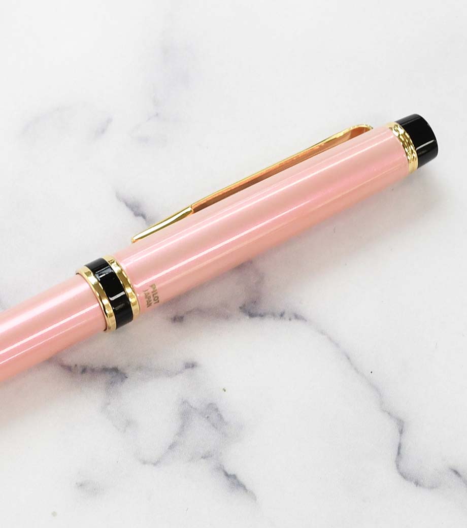 スリムなボディは女性の手にも握りやすく、持ち運びにも便利。手帳用としてもおすすめです。ペン先は回転繰り出し式。ノック音が鳴らない回転繰り出し式はペン先を出す所作も優雅です。大事な商談や会議の場でもスマートに取り出して使えますよ。長く愛用したくなる大人の女性のためのボールペンです。