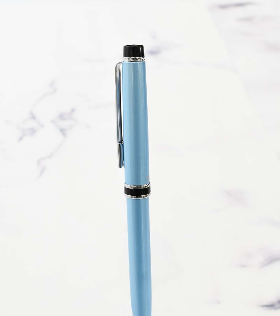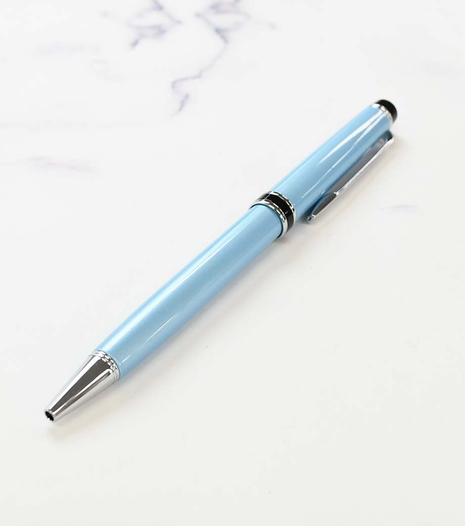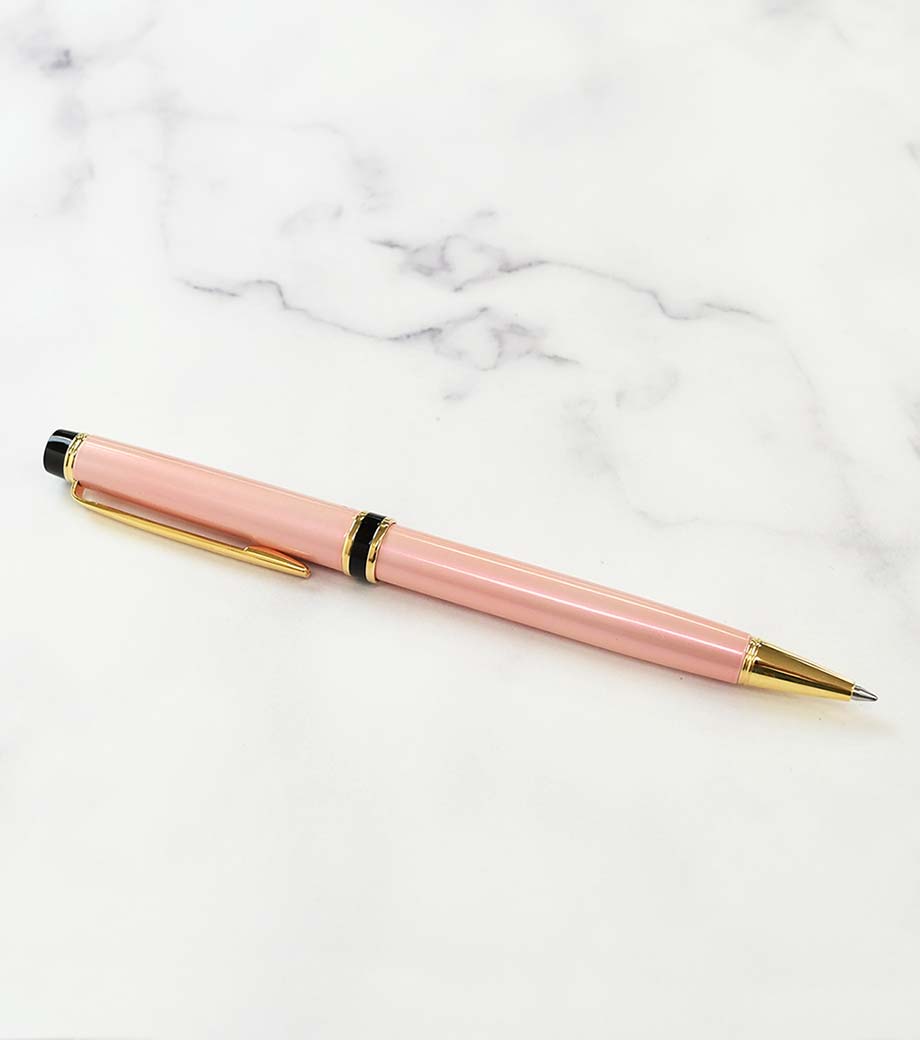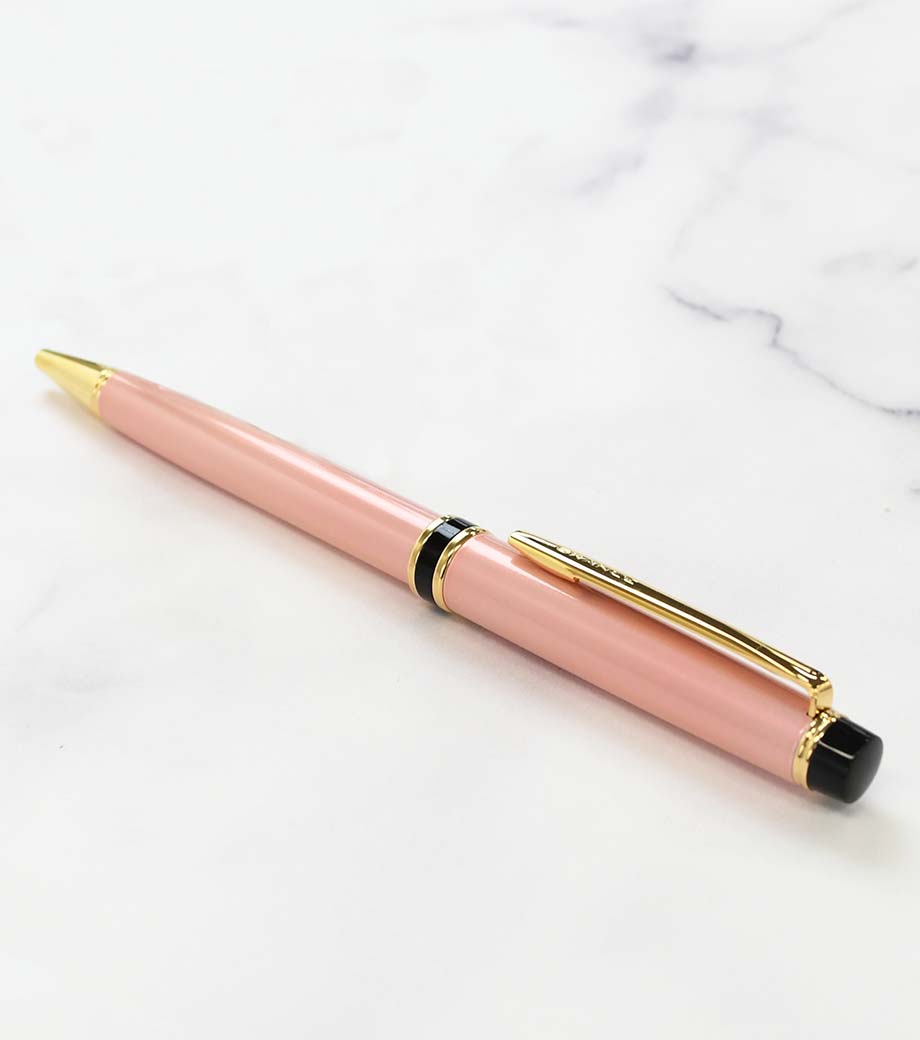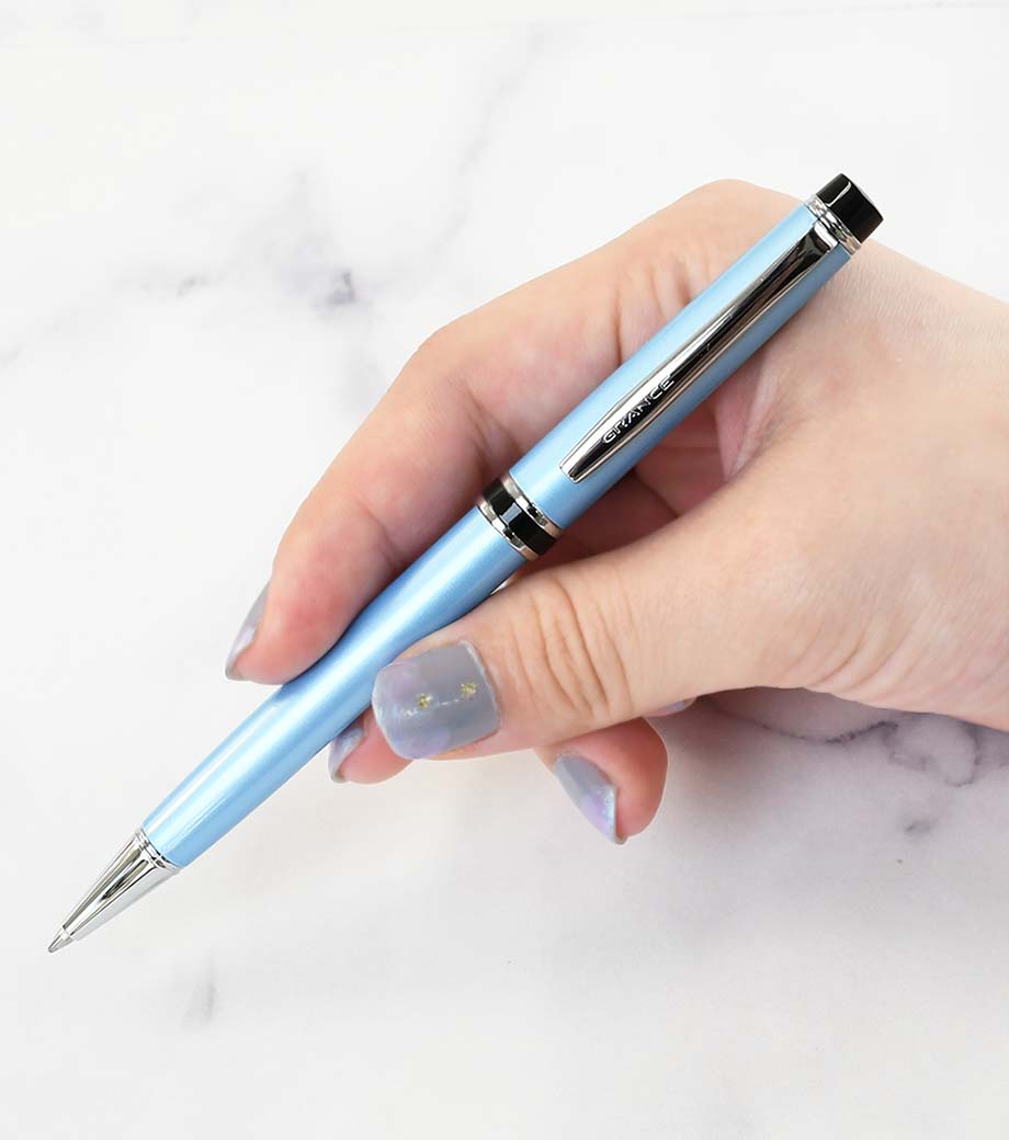 スリムなボディは女性の手にも握りやすく、持ち運びにも便利。手帳用としてもおすすめです。ペン先は回転繰り出し式。ノック音が鳴らない回転繰り出し式はペン先を出す所作も優雅です。大事な商談や会議の場でもスマートに取り出して使えますよ。長く愛用したくなる大人の女性のためのボールペンです。