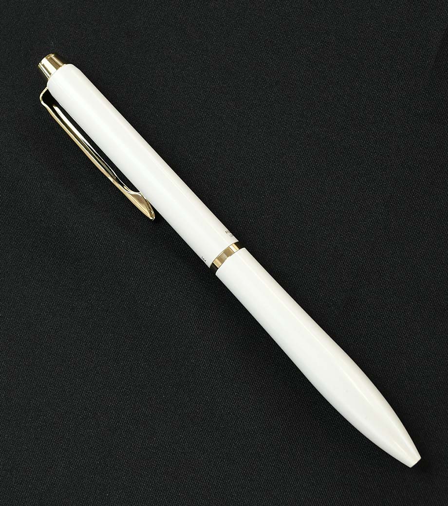 「三菱鉛筆 ジェットストリーム 0.7mm」は低粘度のインクで、なめらかな書き味をウリにした油性ボールペン。書き味や速乾性を武器に、ジェットストリームシリーズは年間1億本以上を売り上げる筆記具界のお化け商品です。お名入れ用の白軸なので学校名や企業名を入れてノベルティや記念品などにいかがですか。
