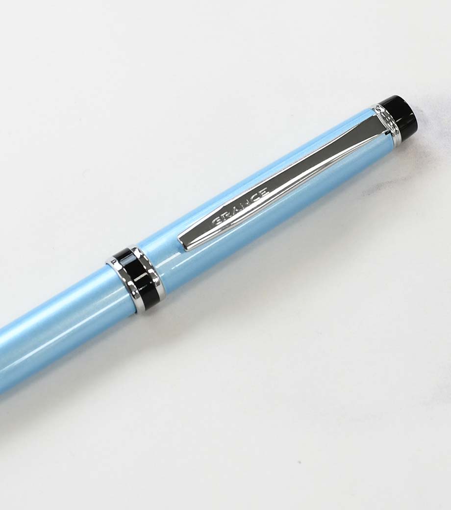 持つ人の印象がよくなる上質感あるカラー3色展開。1色ロゴ印刷でオリジナルボールペンが作れます。ノベルティにおススメです。