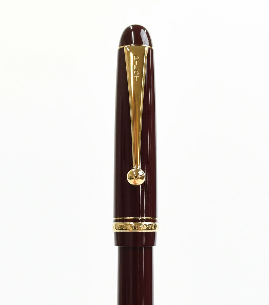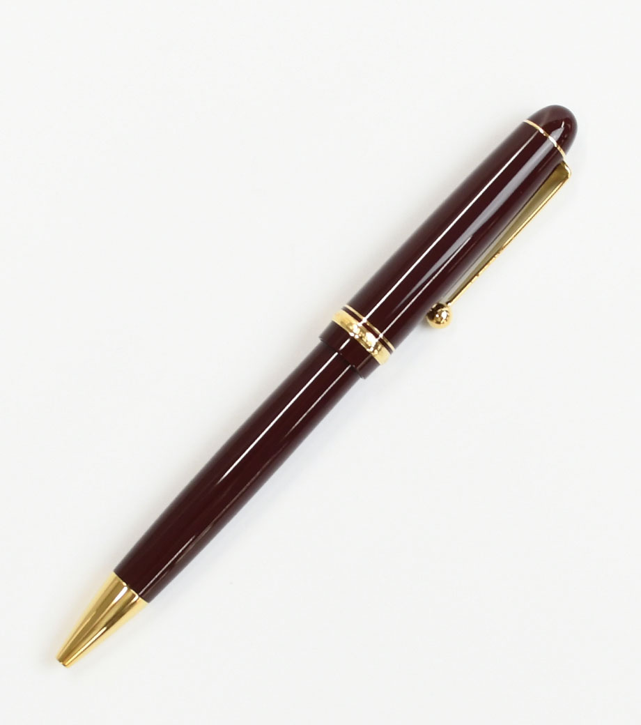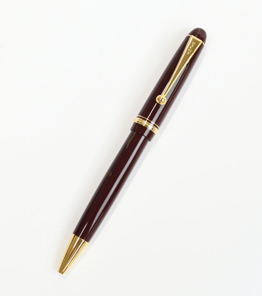 カスタム74は上品でクラシカルな雰囲気が魅力の本格派ボールペン。落ち着いたボディカラーとゴールドの金具のコントラストが高級感を醸し出しています。
