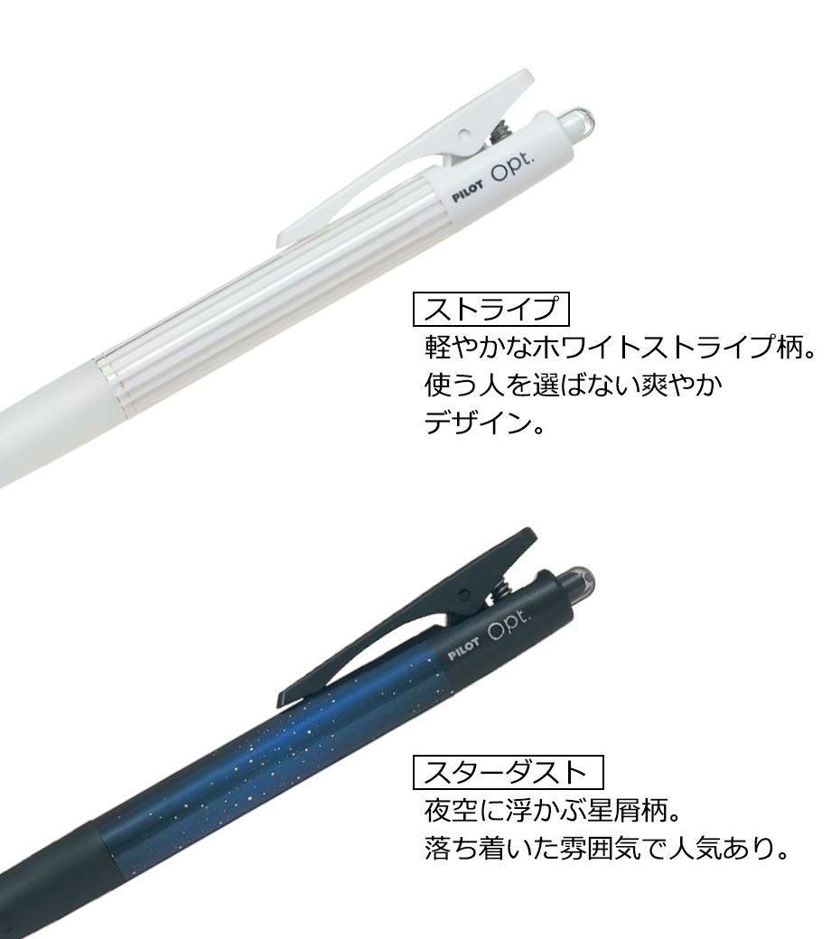パイロット オプト 油性ボールペンは機能を備えたコスパが高いボールペン。太めのグリップは握りやすく、長時間の使用でも疲れにくいと評判です。