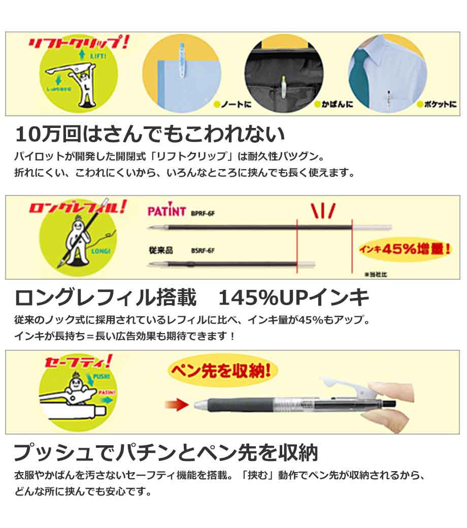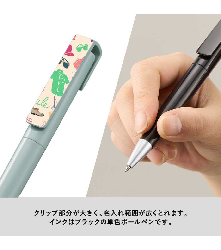軸か大きなクリップ部分にフルカラー印刷で名入れすれば販促効果も期待できます。安価なのでキャンペーンやイベントでのばらまきノベルティにもおすすめです。