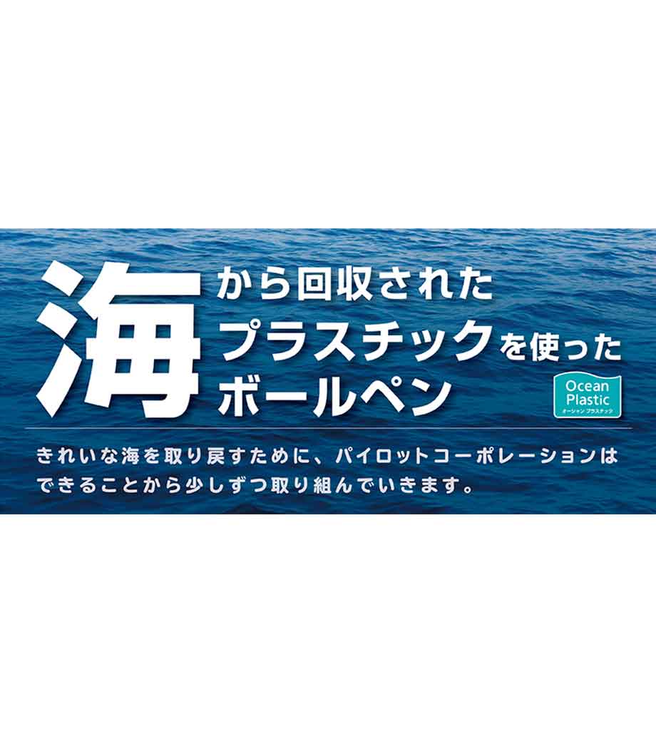 海洋汚染の原因となるプラスチックごみを再生した素材を一部利用した環境にやさしいボールペンです。ドイツ製インクを使用。OBPとは、オーシャンバウンドプラスチックの略称で、海岸から約50km以内の内陸部に廃棄されているプラスチックで海洋汚染の原因になりうるごみのこと。商品を使うことでエコ活動に貢献できます。