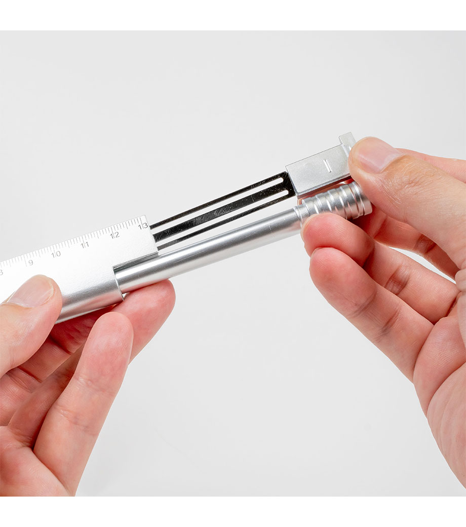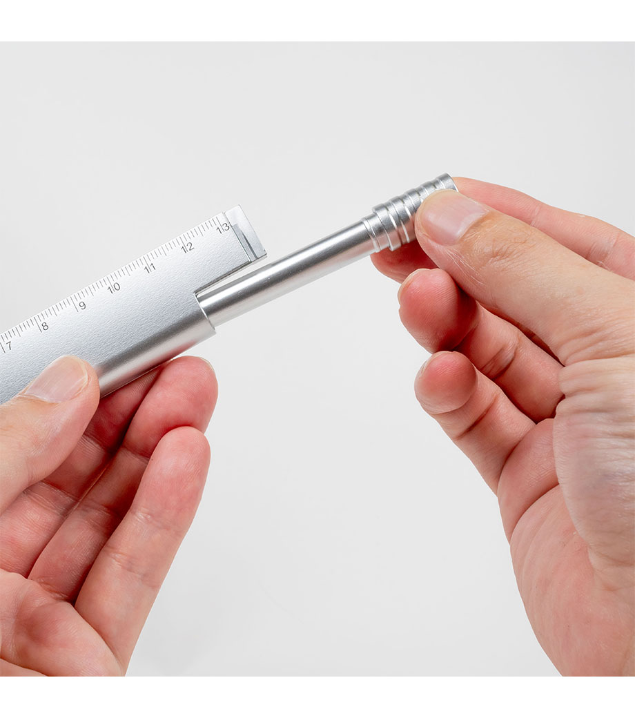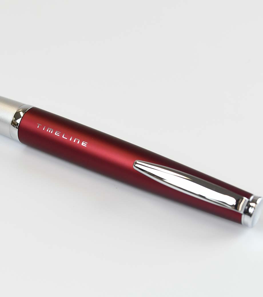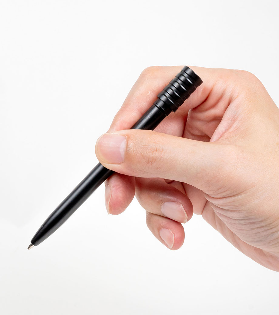 パイロット TIMELINE〈ETERNAL〉はペン先が段階的に現れるダブルアクション繰り出し式。ボディを一度回すと口金、更に回すとペン先が現れます。口金まで収納すると一見ペンには見えない独創的な形状に。ペン先が隠れるので鞄や持ち物に触れて汚してしまうことがありません。