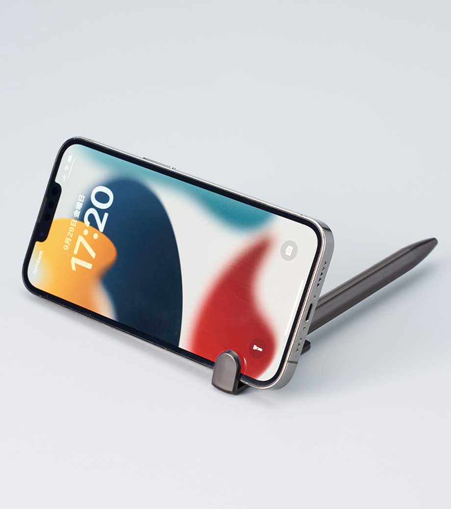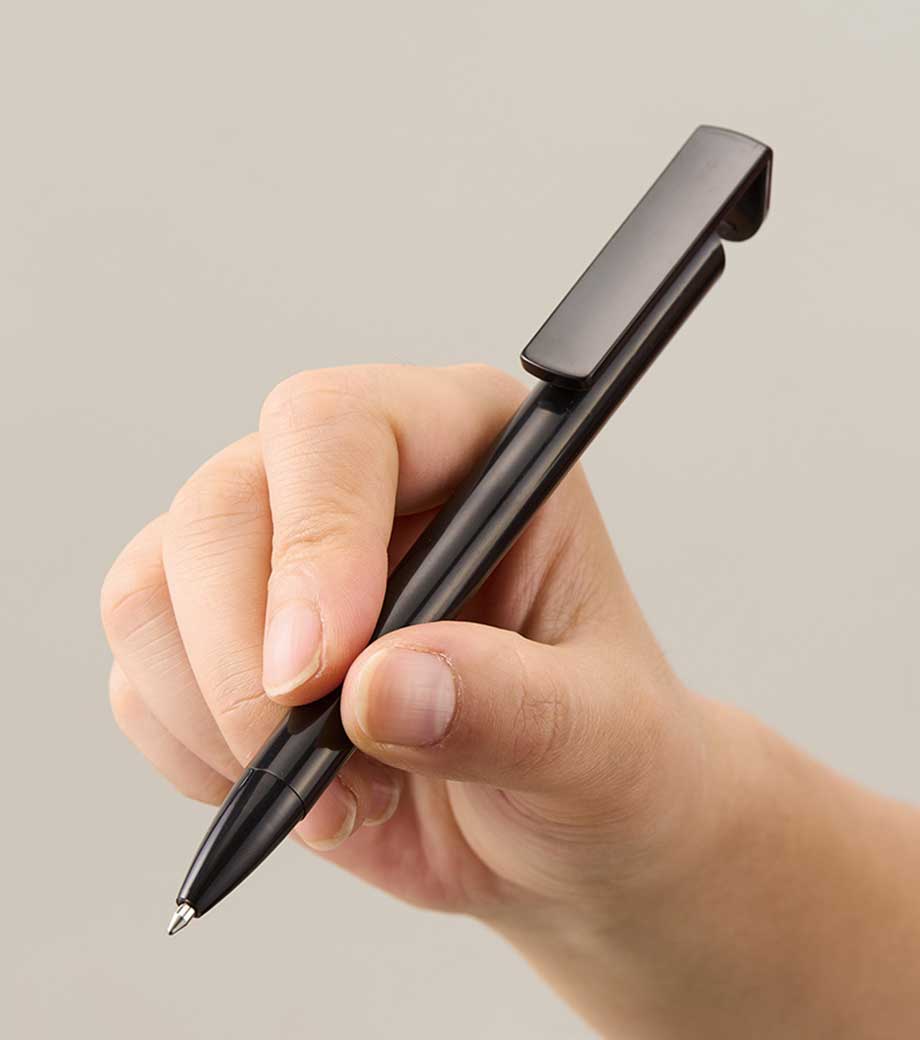 スマホスタンドになるクリップ付きのノック式ボールペン。クリップの間にスマホを挟むことで簡単に立てかけられ、動画視聴する際などに便利です。海洋汚染の原因となりうるプラスチックごみを再利用したエコ製品。素材に由来した、海を意識できる色を取り入れたオシャレなカラー展開です。
