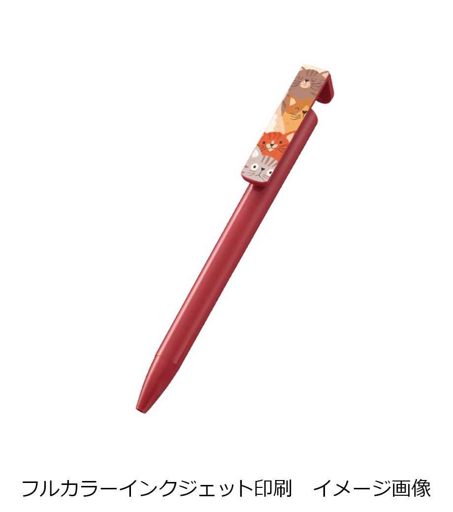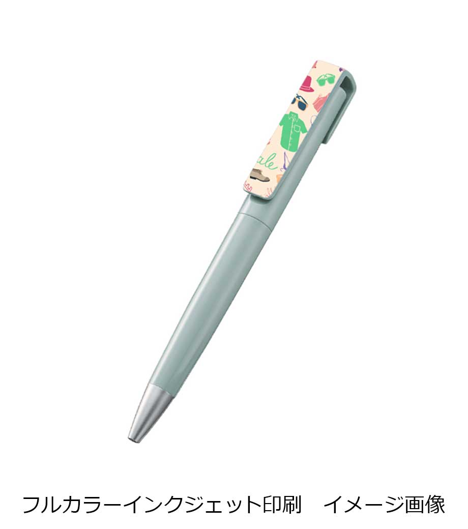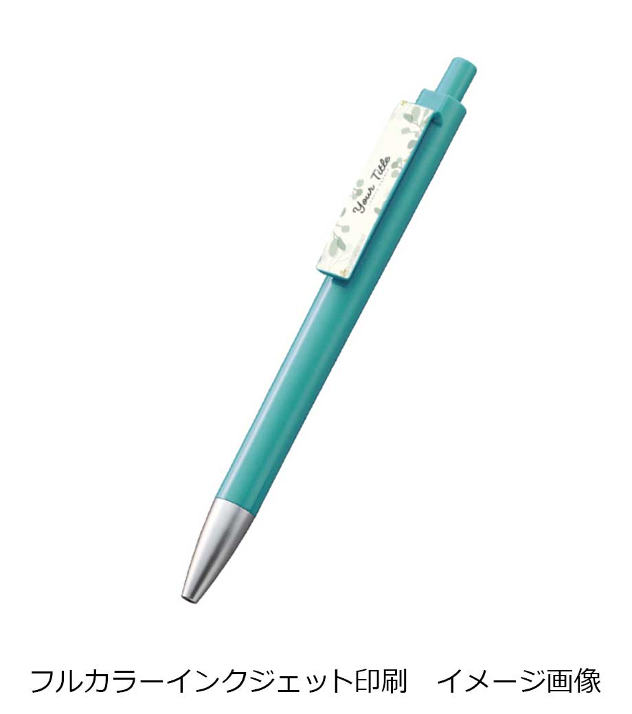クリップ部や軸にフルカラー印刷可能。名入れ部分がフラットでデザインが映えます。安価でコスパが良いので、ばらまき用のノベルティや学校行事の記念品などにおすすめです。