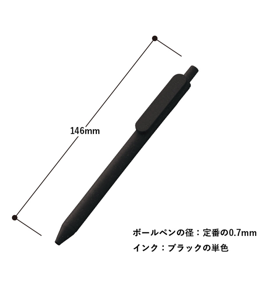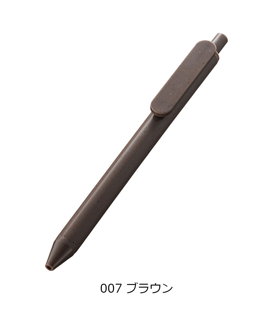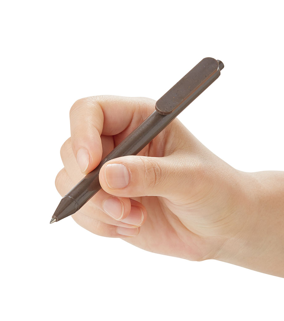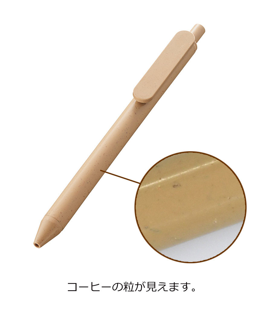 環境に優しく、ナチュラルな風合いが魅力のエコボールペン。ボディ部分には紙を使用し、ノック部分とペン先には、廃棄予定だったコーヒー豆かすを練り込んだ樹脂を採用しました。コーヒー由来の独特な質感とやさしい色合いが、おしゃれな印象を演出します。