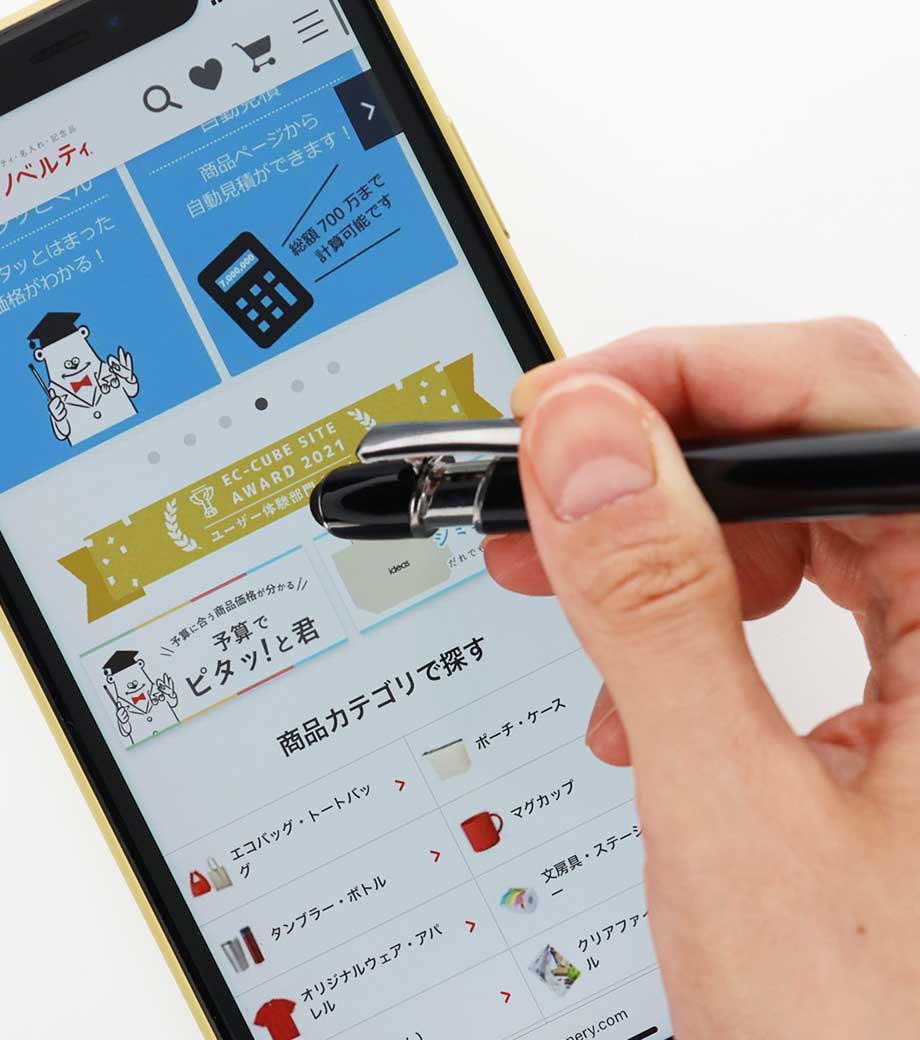 本体軸部に1色またはフルカラーでの名入れが可能です。特に白軸ボディはフルカラー印刷が映えるので、企業名やロゴを入れれば販促効果はバッチリ!展示会や説明会、営業配布などにいかがでしょうか。