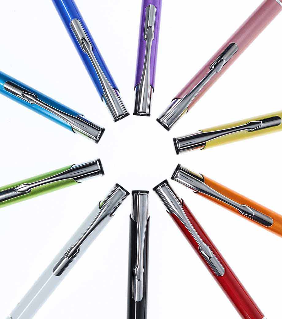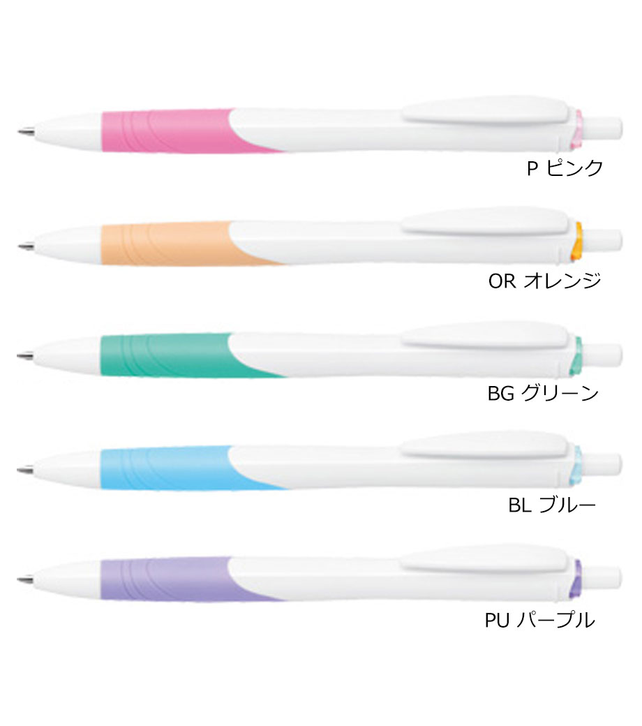 安価でばらまきノベルティにおすすめ。お好きな本体色を選び、軸かクリップ部分に企業ロゴを入れオリジナルボールペンを作成してみませんか。