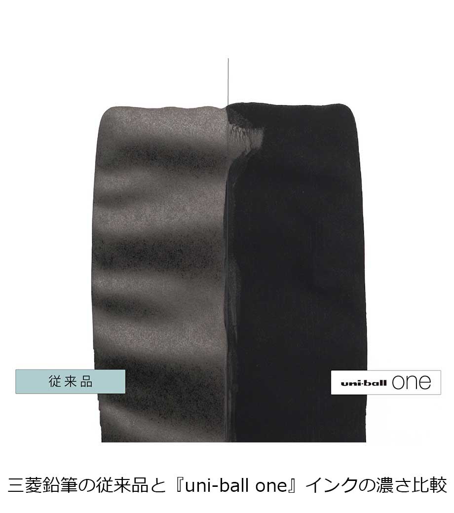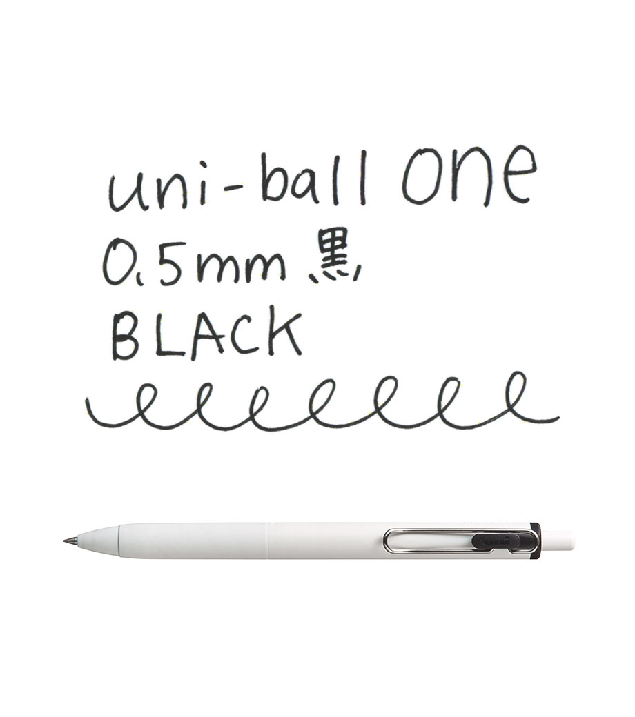 三菱鉛筆 ユニボール ワン 0.5mmは一般的なゲルインクボールペンと比べて黒はより濃く、カラーはより鮮やかに発色するボールペンです。0.5mmボール径はノートや書類にスラスラ大きめに筆記できます。