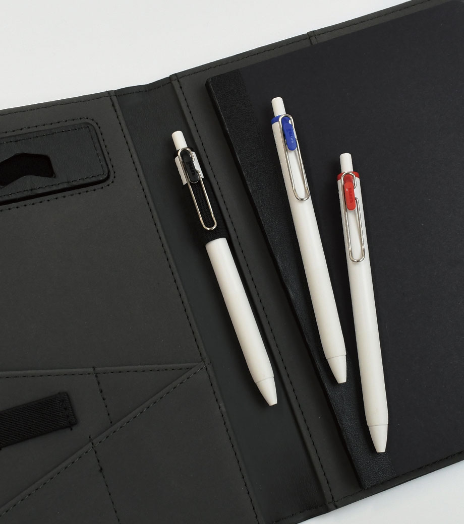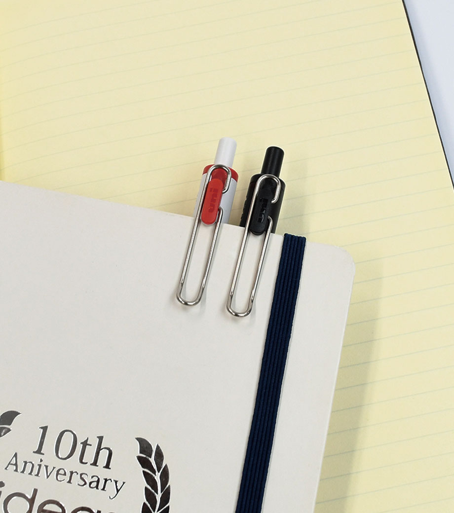 ノートと一体化して持ち運べる新発想のノック式ボールペンです。ネオジウム磁石が内蔵されたホルダーをノートにセットすれば、ペンが“ピタッ”と固定されます。サラサラ書けるジェルインクで書き心地も抜群!オンオフ問わず使えるスタイリッシュなデザインが魅力です。