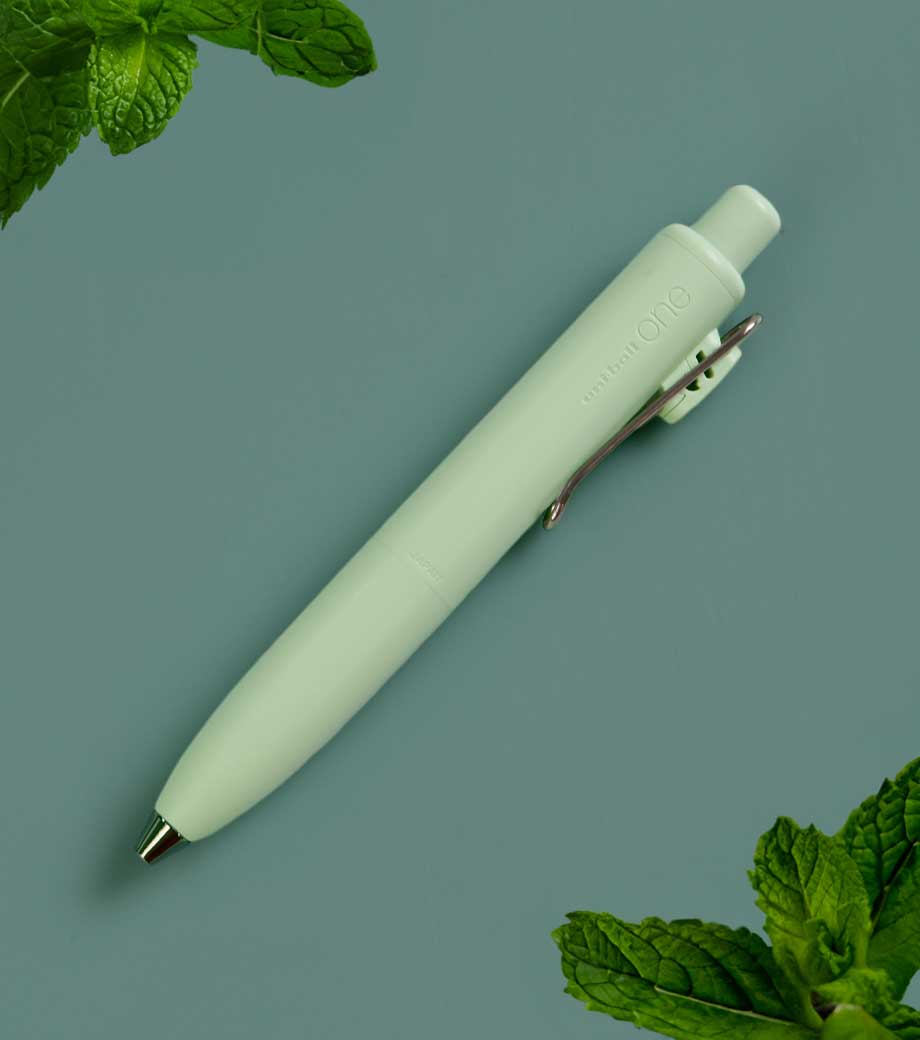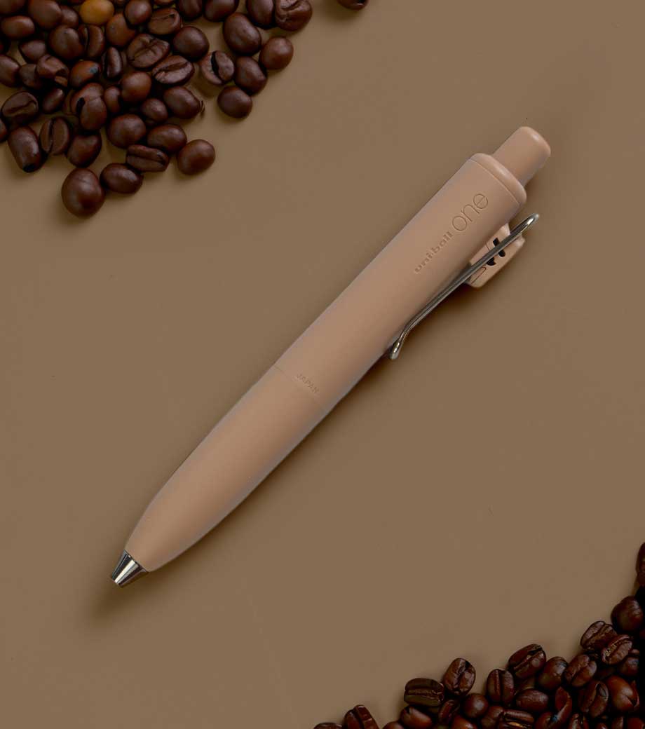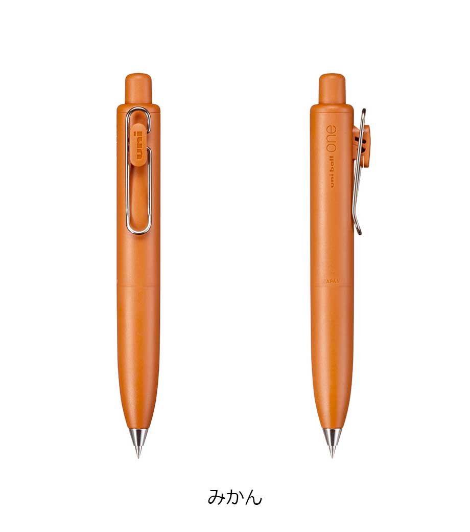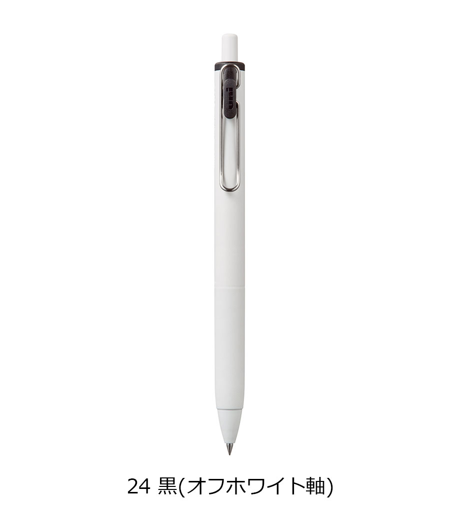 三菱鉛筆 ユニボール ワン F 0.38mmは、日常で何気なく目にする景色を表現したくすみカラー軸。主張しすぎない色合いと独特な色名が情緒的でおしゃれです。本体色ブラック(消炭)は、クリップも黒メッキになってます。凹凸を限りなく減らした流線型が軸全体に一体感を与え、シャープで洗練された印象に。